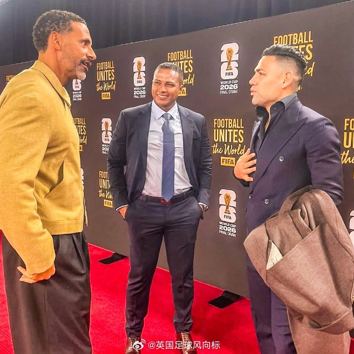 【曼联名宿聚首】三位前曼联球员,里奥-费迪南德(2002-2014)、安东尼奥-瓦伦西亚(2009-2019)、法尔考(2014-2015),在世界杯抽签仪式之后叙旧!