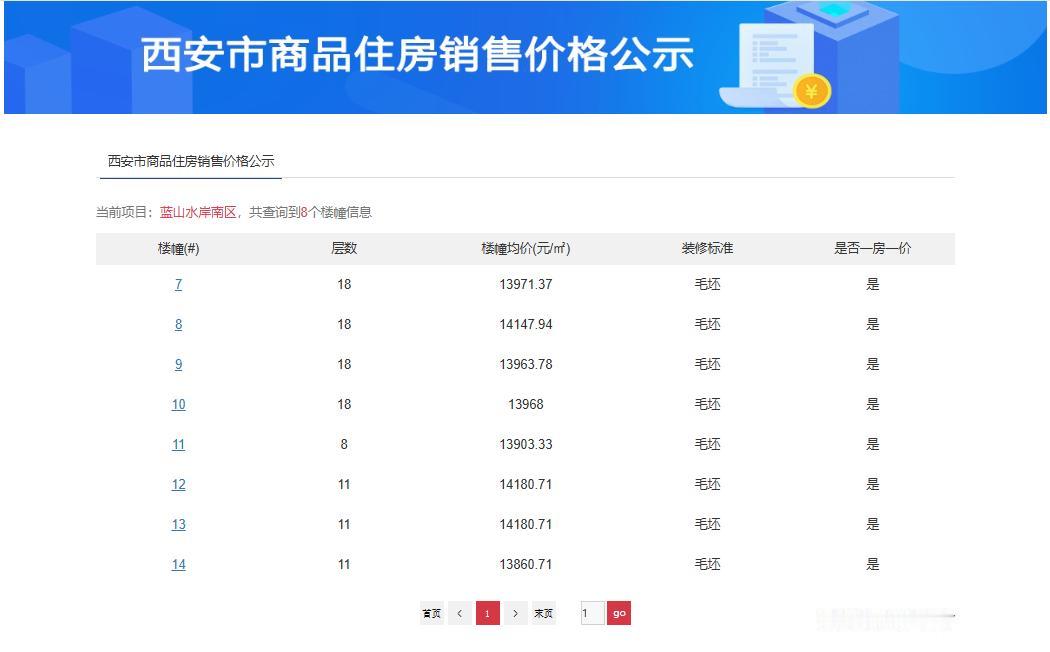 快讯!日前,西安住建局官网公示了航天基地揽月阁板块“蓝山水岸项目”457套毛坯房源的价格,均价13860.71元/㎡起! 蓝山水岸项目位于西安市航天基地,北临航创路,西临神舟三路,南邻航天南路,东临山水香缇小区,净用地面积65964.74㎡(约99亩),总建筑面积约25万平方米,分为南北两区; 其中,项目(南区)位于神舟三路与航天南路十字东北角,总用地面积33447.36㎡,总建筑面积110902.86㎡,容积率为2.41,绿化率达35%,内含一栋8层住宅楼、三栋11层住宅楼、四栋18层住宅楼。 项目自带幼儿园、部分商业,北侧紧邻航天中湖公园,东侧300米是启航公园、西安菁英学校、即将开业的大型商业星璇广场,西侧距离星河运动公园约350米,南侧500米左右是揽月阁,距离西安地铁4号线东长安街站约600米; 周围还有星河运动会馆、西安航天城第三小学、西安航天医院、西安市长安区中医医院、西安航天城文化生态园等配套。 本次价格公示,项目公示了南区地块全部8栋楼的价格(7、8、9、10、11、12、13、14 楼 ),分别为层高8层、11层、18层的小高层,户型面积区间117.15㎡--264.38㎡,楼栋均价分别为13971.37元/㎡、14147.94元/㎡、13963.78元/㎡、13968元/㎡、13903.33元/㎡、14180.71元/㎡、14180.71元/㎡、13860.71元/㎡,共457套毛坯房源。 值得注意的是,项目南区已全面竣工,建筑立面、园林景观、公区装修均实景可见...