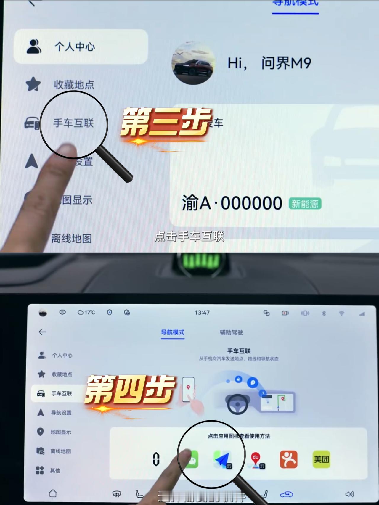 问界M9支持手车互联投屏导航,那么非华为手机怎么实现投屏导航? 操作步骤: 打
