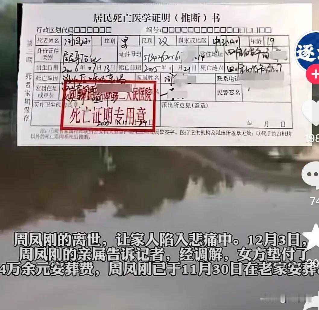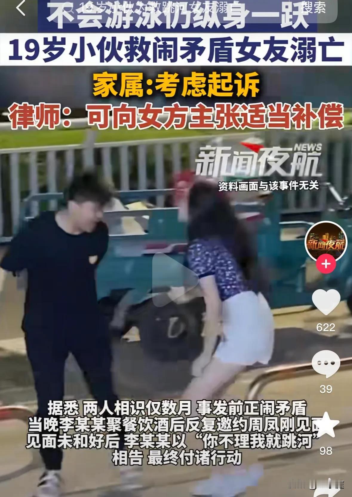 你敢想象吗?12月7日报道在四川西昌有这样一个男孩,他长得阳光帅气,平日里非常乐观开朗,是一个很好相处的人,然而,在2025年11月21日凌晨,他为了救赌气跳河的女朋友,生命永远定格在了冰冷的河水中,更让人难以接受的一点是,女方获救以后冷漠的态度。[黑线] 四川西昌一名十九岁青年周凤刚于2025年11月21日凌晨溺水身亡,根据已披露的信息,事发前他与女友存在感情矛盾,当日女友酒后要求见面,见面后女友跳入河中,周凤刚随即下水施救,最终女友获救,周凤刚不幸遇难。 周凤刚出生于2006年,据其家属描述,他平时懂事、孝顺。事发当日凌晨,其女友在与朋友饮酒后多次联系要求见面,周凤刚在见面后,未能与女友达成和解,随后便发生了跳河与救人事件。 据周凤刚家属向媒体透露,女方未出席葬礼,也未主动联系慰问,后经当地相关部门调解,女方家庭支付了四万元丧葬费,截至目前,未见女方或其家庭有其他公开表态或行动。 施救者不会游泳却下水这一细节,成为安全警示的核心点,许多安全专家反复强调,不鼓励不具备相应能力的个人贸然下水施救,应优先呼叫专业救援,利用岸边工具或寻求多人协作。 而对于女方跳河的行为,其是否需承担相应责任,取决于该行为在法律上如何定性,以及其与周凤刚死亡后果之间的因果关系认定,这需要依据权威部门的调查与法律判断。 心理专家指出,以伤害自己作为情感要挟,是一种极具破坏性的沟通模式,不仅无法真正解决问题,还可能将双方置于巨大的物理与心理风险之中。 在亲密关系中,当一方出现以自伤相威胁的极端行为时,正确的应对方式至关重要,首先保持冷静,明确告知对方其行为的严重性,但不可妥协于不合理的要挟,应立即寻求第三方帮助,如共同朋友,家属或报警,让专业人士介入处理。 帮助他人的前提是自身处于安全境地,否则可能造成更大的不幸,建立清晰的情感关系边界,识别并远离有严重情绪失控倾向的人,是必要的自我保护。 凡事三思而后行,关键时候可以保持情绪稳定。 “这姑娘的心是石头做的吧,人家用命换你一条命,连葬礼都不露个面,最基本的良知呢。” “小伙子太仁义了,分手了还去赴约,出事了还跳下去救,可这善良用错了地方啊。” “女方用跳河来威胁,这行为本身就太极端了,这哪是谈恋爱,这是在要命。” “和这种人相处,就像身边放了颗定时炸弹,太累了。” “有没有法律界的朋友说说,女方这情况需要负法律责任吗,毕竟人是因救她而死的。” “这不仅仅是道德问题,可能还涉及法律上的补偿责任。” “大家也别光骂女方,那晚她喝了酒,情绪可能已经崩溃了,一个想用跳河来解决问题的人,心理状态本身可能就不健康,事后她或许也陷入巨大的创伤和恐慌,无法面对。” “当然,这不是为她开脱,只是说人的心理有时很复杂。但无论如何,不露面、不慰问,对逝者家属的伤害是实实在在的。” “最可怜的是男孩子的父母,养到19岁,说没就没了,给再多钱有什么用,往后的日子怎么过。” “这件事给我们所有人都提了个醒,找对象,一定要看对方情绪是否稳定,遇到一点矛盾就走极端,要死要活的,千万要远离,这不是爱情,这是灾难。” 你最想说的是什么?如果你是周凤刚的朋友,在知道两人已闹分手且女方情绪极端的情况下,你会在他出门赴约前,对他说一句怎样的劝阻话? 信源:红星新闻