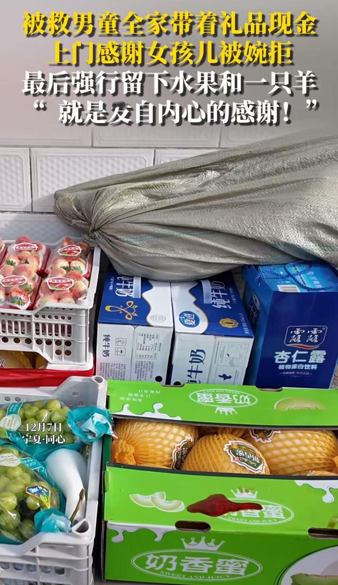 这个小女孩火到人民日报!宁夏同心,4岁男童掉入冰窟,13岁女孩参与救人后默默离开,回家后怕父母担心,谎称“衣服被洒水车淋湿”!父亲在网上刷到视频后,才知道女儿干了一件惊动全网的大事,既心疼又欣慰!父亲:“她从小就敬佩消防员,这或许是榜样的力量!” 12月6日,4岁的男童掉入冰窟,周围的市民发现后,立刻拨打了救援电话,可远水解不了近渴,孩子的情况刻不容缓。 冰冷的湖水将孩子包围,孩子冻得浑身发抖,嘴唇都发紫了,每一秒的耽搁都可能让孩子陷入生命危险。 就在这紧急关头,李佳琪路过看到了这一幕。她没有丝毫犹豫,立马挺身而出,坚定地说:“我的身体轻,让我来……” 那声音虽略显稚嫩,却充满了力量。她手持市民递来的管子,小心翼翼地爬下冰窟。 在冰窟中,她努力地把生的希望递到男孩身边,那一刻,她仿佛忘记了自己也身处危险之中。然而,意外还是发生了,她自己不幸落水了。 好在消防员火速赶到,凭借着专业的救援技能,成功将男童救出,男童脱离了危险。 而浑身湿透的李佳琪,没有丝毫留恋,悄悄地离开了现场。回到家后,她怕父母担心,便编造了身上的水是洒水车淋湿的谎言。 可她没想到,她救人的英勇一幕被路人拍了下来发到了网上。 男童家长得知后,全网寻人,只为当面感谢这位救命恩人。 李佳琪的班主任也刷到了视频,半夜打电话来询问是不是她,直到这时,李佳琪才把自己救人的事情一五一十地说了出来。 父亲听后震惊不已,连忙上网搜索相关视频。当他看到女儿冒着如此大的危险去救人,眼眶瞬间湿润了,心里既后怕又为孩子感到无比骄傲。后怕的是女儿差点就陷入危险,骄傲的是女儿有如此勇敢善良的品质。 而男童的家长也是知恩图报之人,他们带着一大堆水果、礼品,甚至还送来了一只羊,来到李佳琪家里,真诚地感谢她的“救命之恩”。 李佳琪婉拒了这些谢礼,她真诚地说这没什么,换做谁都会出手相救的。但在男童父母的一再坚持下,李佳琪一家才收下了这份心意。 记者了解到,李佳琪今年刚上初一,却有着超越一般成年人的勇气。看看她那被冰划伤的手,再看看她因为救人而感冒虚弱的样子,我们就能想象到当时情况的危急和她所承受的痛苦。 但她没有退缩,没有畏惧,用自己的行动诠释了善良与勇敢的真正含义。 李佳琪,用她的勇敢和善良,为我们树立了一个光辉的榜样。她让我们看到,在危险面前,总有人会挺身而出,用自己的力量去守护他人的生命。 而男童一家,也用他们的知恩图报,让我们感受到了人间的温暖与真情。 善良和感恩永远是这个世界上最美好的品质。我们应当大力弘扬这种精神,让更多的人在面对困难时勇敢前行,在接受帮助后懂得感恩,让这个世界变得更加美好!