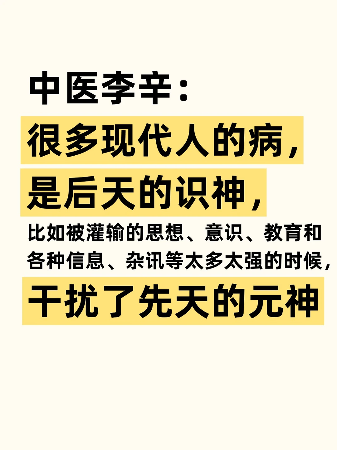 “我们有先天的元神,也有后天的识神。很多现代人的病,是后天的识神,比如被灌输的思想、意识、教育 和各种信息、杂讯等太多太强的时候,干扰了先天的元神。”