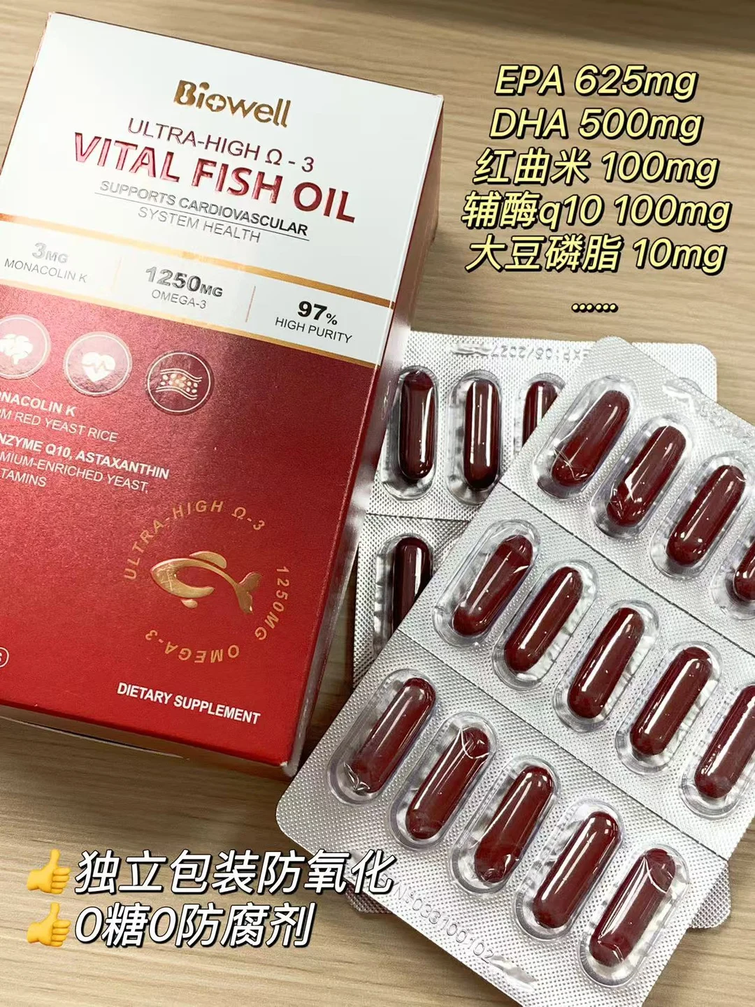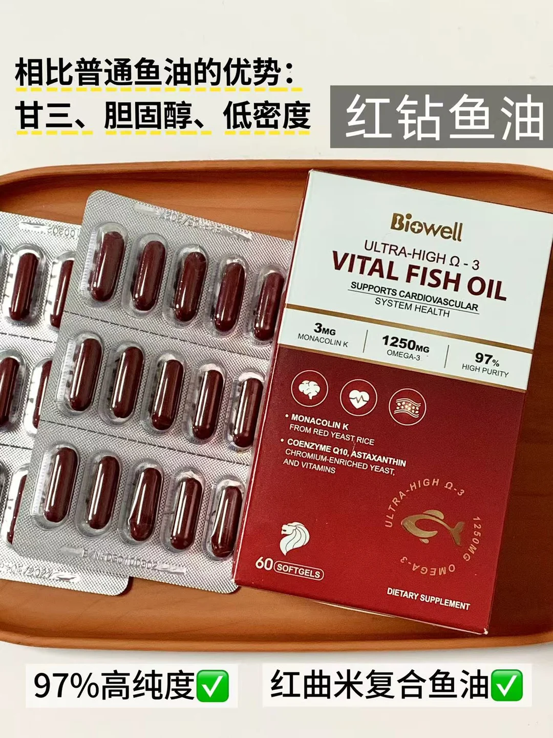 2️⃣复合鱼油标杆,添加了红曲米、磷脂、辅酶Q10等各种真对血脂的高阶成分,市面上这种复合鱼油少之又少