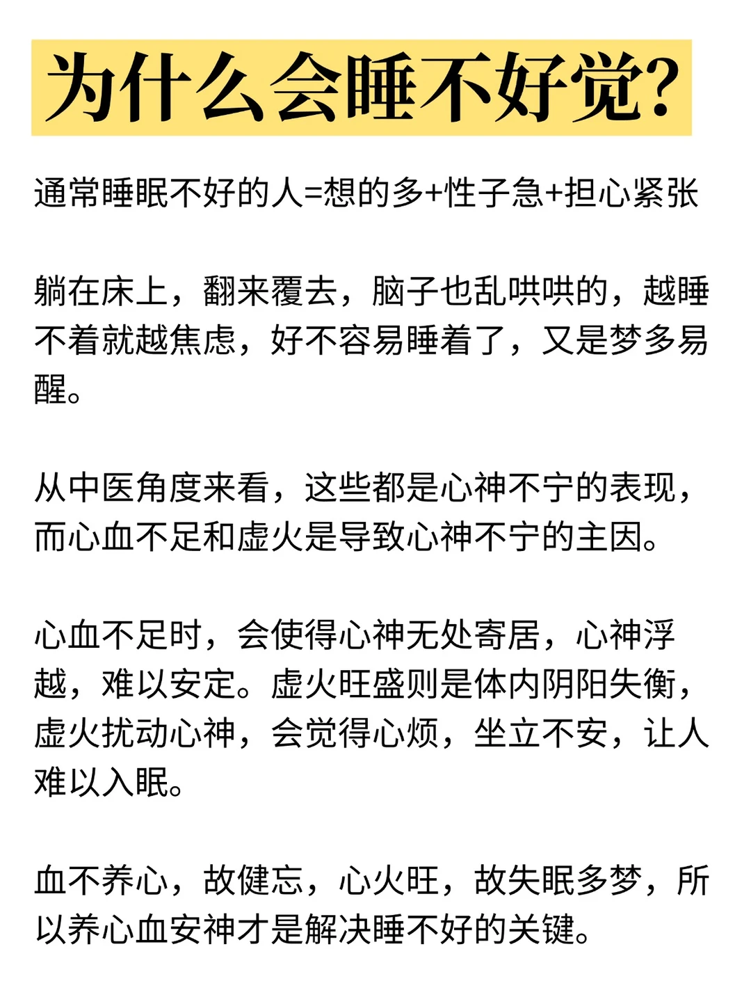 导致失眠的原因多种多样,从中yi角度来看,不仅仅是压力大,更为常见的是心血不足和虚火导致的心神不宁。