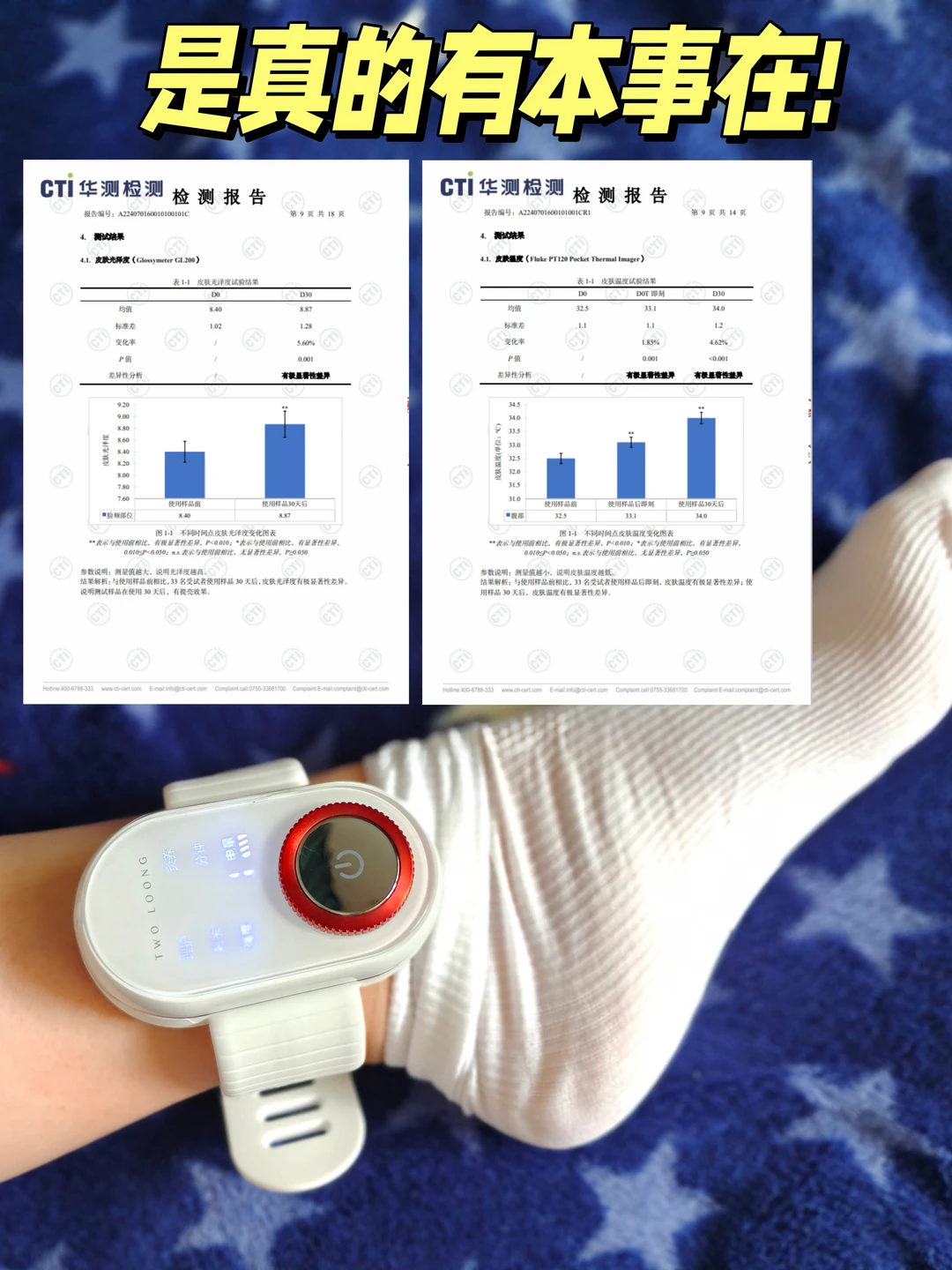 它用起来好方便,像戴手表一样轻松。先给这个小红环涂上凝胶,佩戴在脚踝处就可以了。32分钟,追剧时就能完成护理