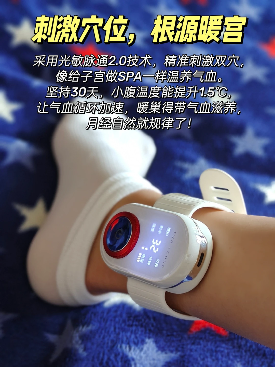 我特意去了解了一下到底是什么原理,才发现是双龙脉姨妈少经络仪通过光敏脉通 2.0 技术模刺激女性妇科圣穴“三阴交穴”。