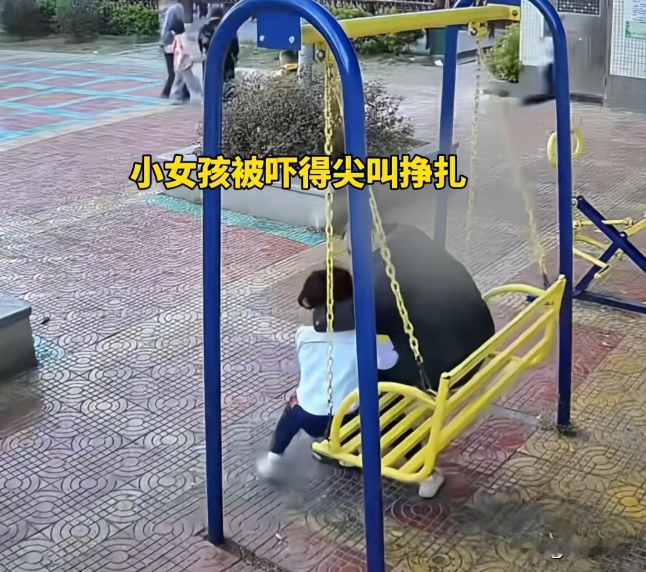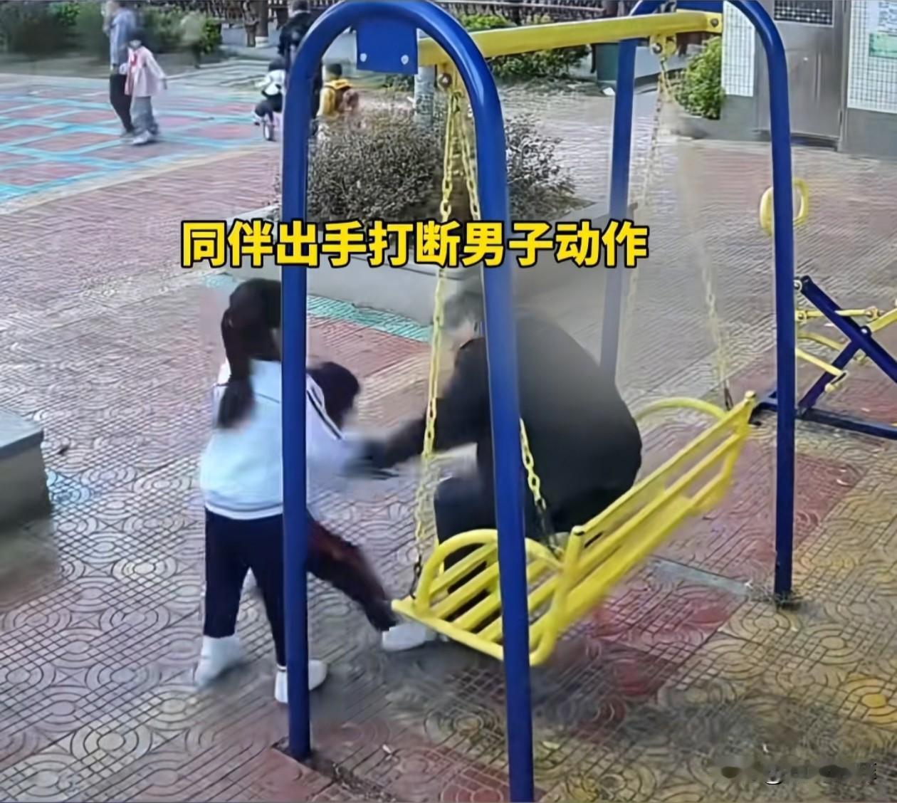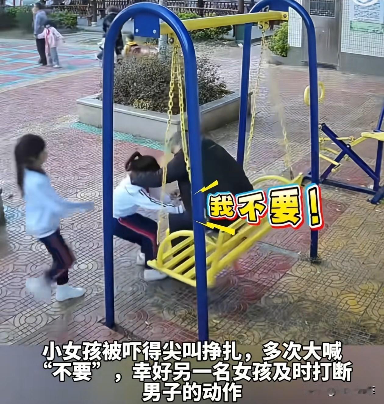 广东,两名小女孩正在荡秋千,一名陌生男子突然走过来,强行坐在其中一个女孩旁边并紧