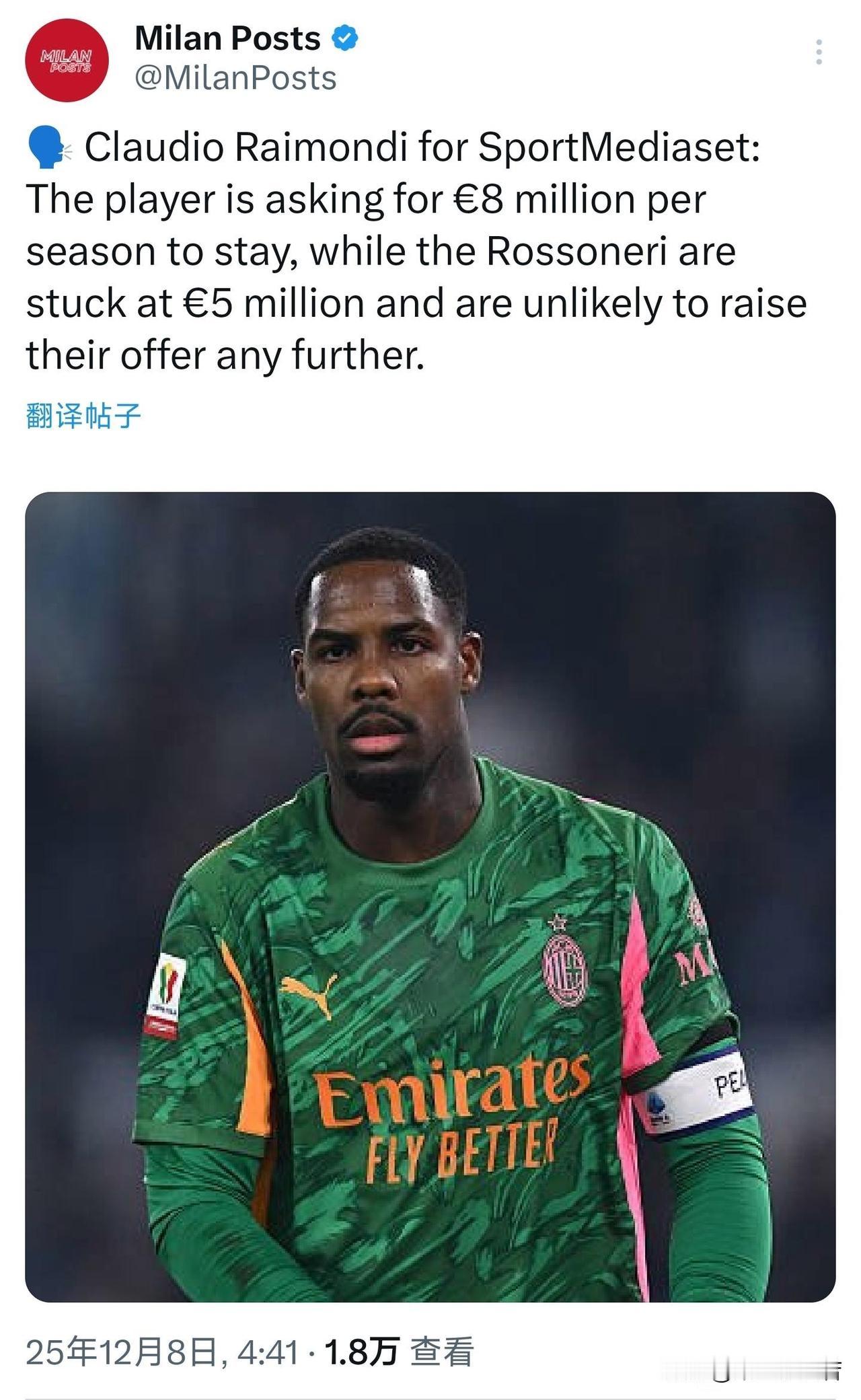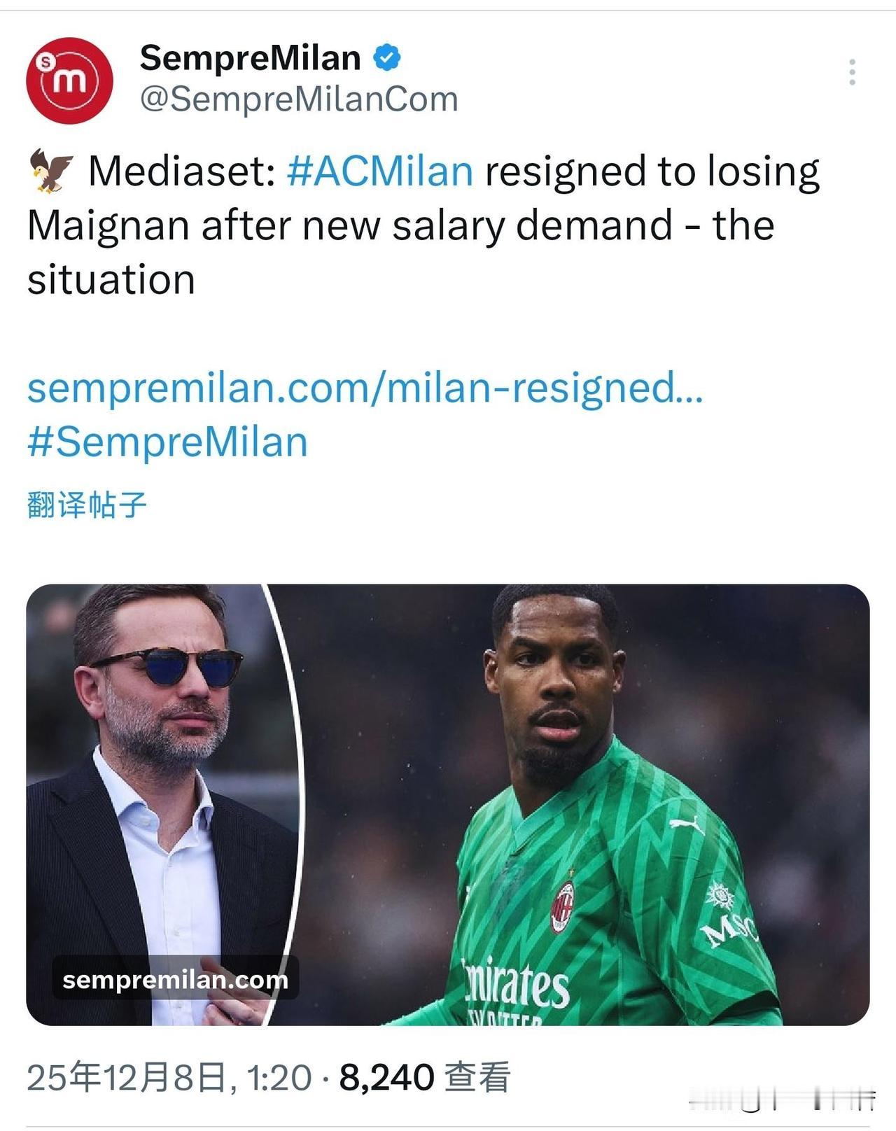 迈尼昂几乎不会留在米兰,虽然之前很多人猜测迈尼昂不会续约,但毕竟没有官方宣布啥,大家对于迈尼昂一直都是期待,现在红鸟集团算正面回应了,迈尼昂对于薪资的要求,超出米兰能承受的范围,米兰与迈尼昂之间的谈判无法开启。 无法承受?迈尼昂狮子大开口?个人不觉得是迈尼昂狮子大开口,迈尼昂之前可是答应了米兰的500万欧元续约价格,是弗拉尼会计出尔反尔,迈尼昂现在态度就是这个价格我就签字,你给了我也心里痛快了,你不给,我离开了也算心里痛快了,总之现在考虑的是心里痛快。 当然这个事情也不能说弗拉尼会计做错了,一个门将伤病能比中前场球员还多,而且黑人球员状态下滑会比较快的,弗拉尼会计毕竟不是足球出身,他不能接受奥里吉那样的躺平球员,弗拉尼会计是典型的企业思维,你拿我钱了必须要做出贡献,没有贡献就不能考虑给高合同。