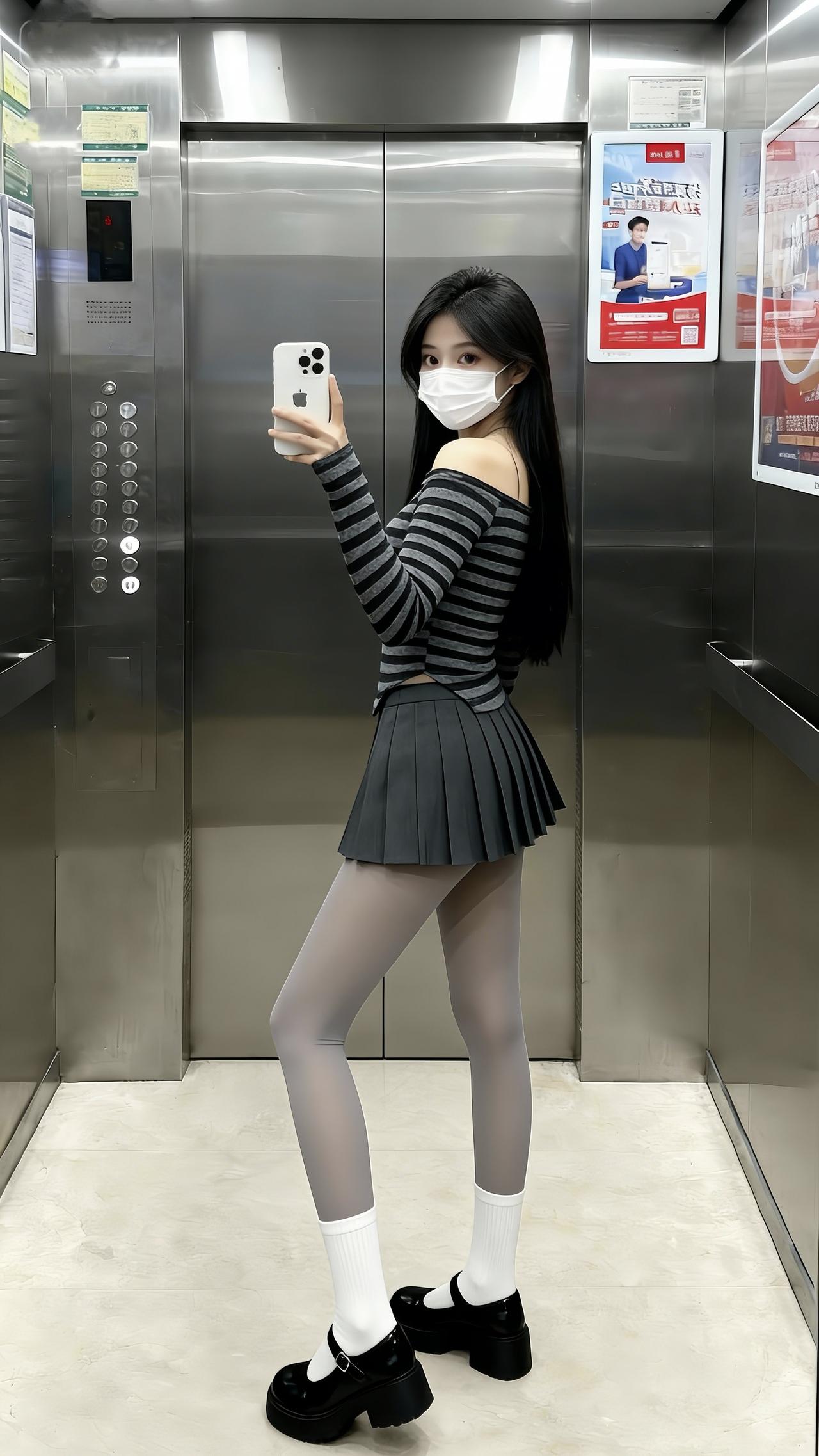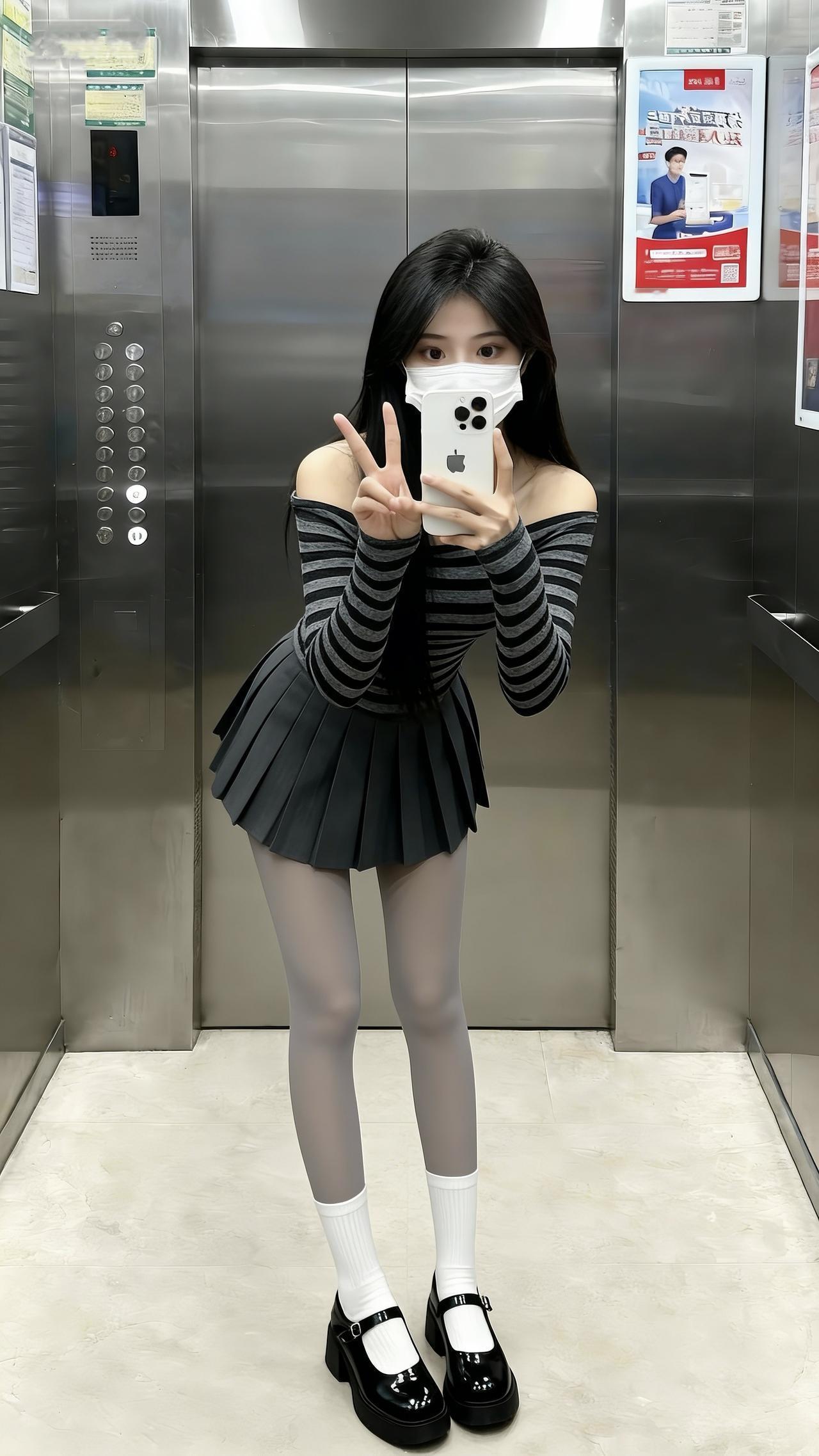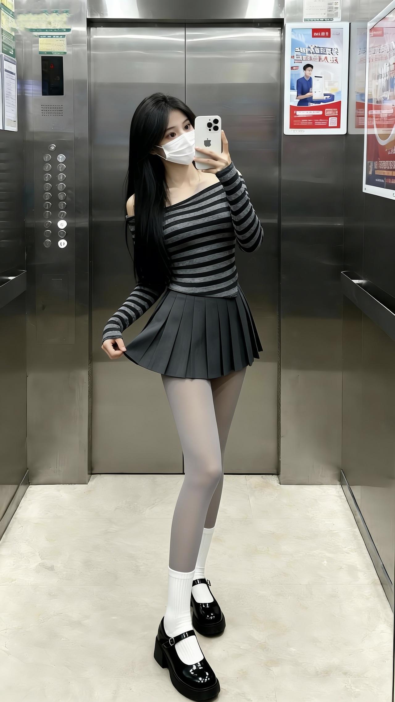 不要把美丽留给明天,今天就穿出最美的模样。短裙穿搭 穿搭日常分享 电梯拍照姿势 百褶裙少女