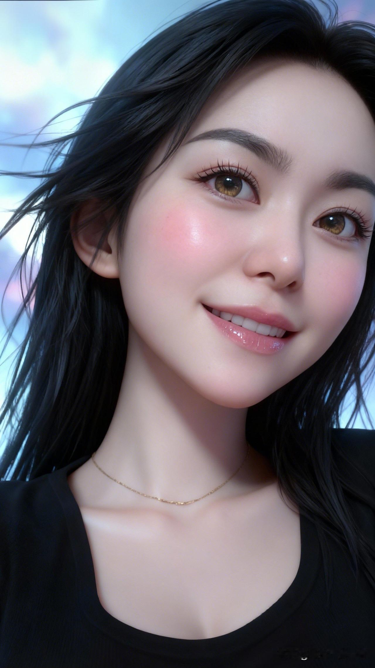 笑靥如花,倾国倾城。优雅自信穿搭分享 甜美笑容,黑发飘逸,金色项链点缀,完美无瑕的肌肤,元气满满的一天!😊✨