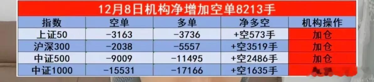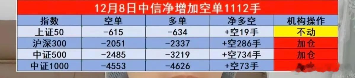 12.8周一晚间 大利好!中信和机构都是大幅加仓!最新期指数据来了!中信净增加空单1112手机构净增加空单8213手从期指数据看,今天中信是继续加仓的,尤其是机构,大幅加仓。今天大盘继续强攻,但近期有美联储议息个小日本加息两个节点,市场有一定风险,需要控制好仓位。不作为投资买卖建议,仅供参考