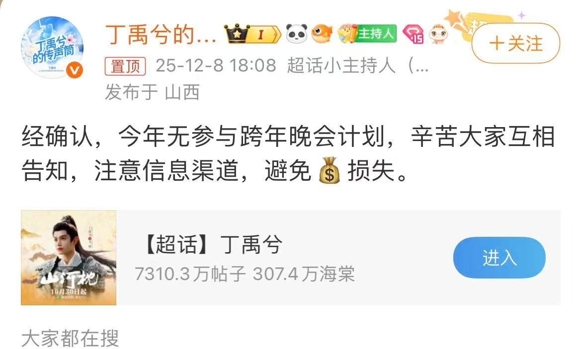 丁禹兮确认不参加跨年晚会丁禹兮确认不参加跨年晚会