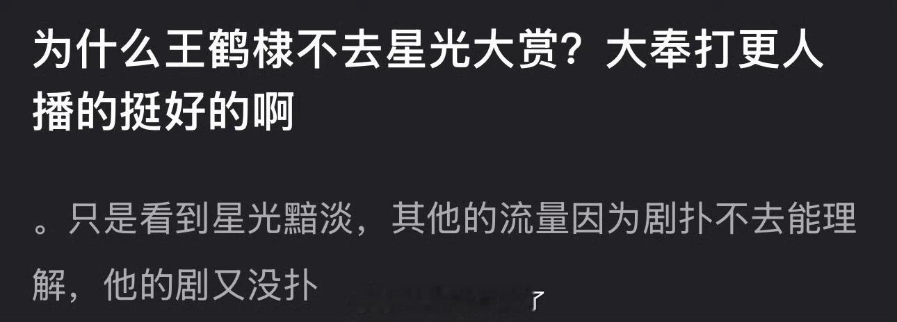 为什么王鹤棣不去星光大赏?大奉打更人不是播的挺好吗?