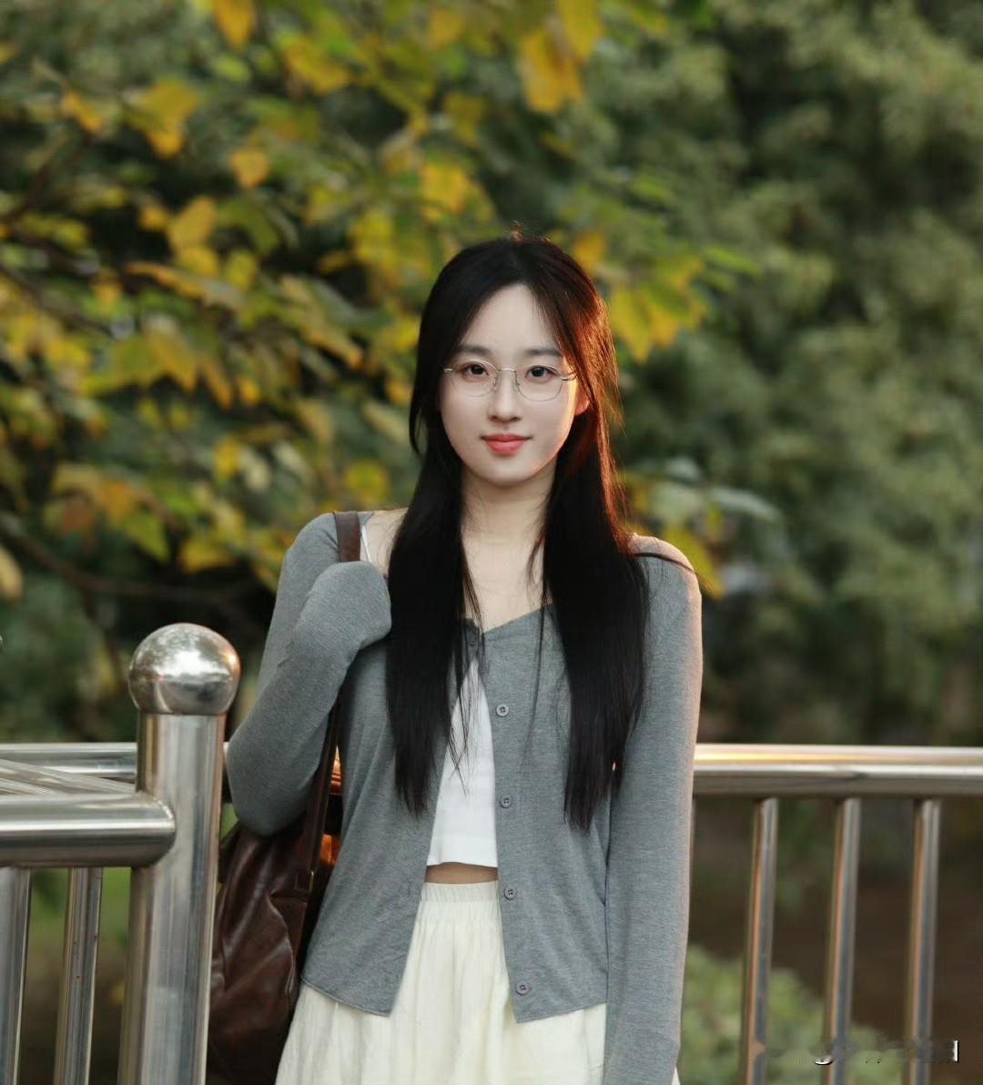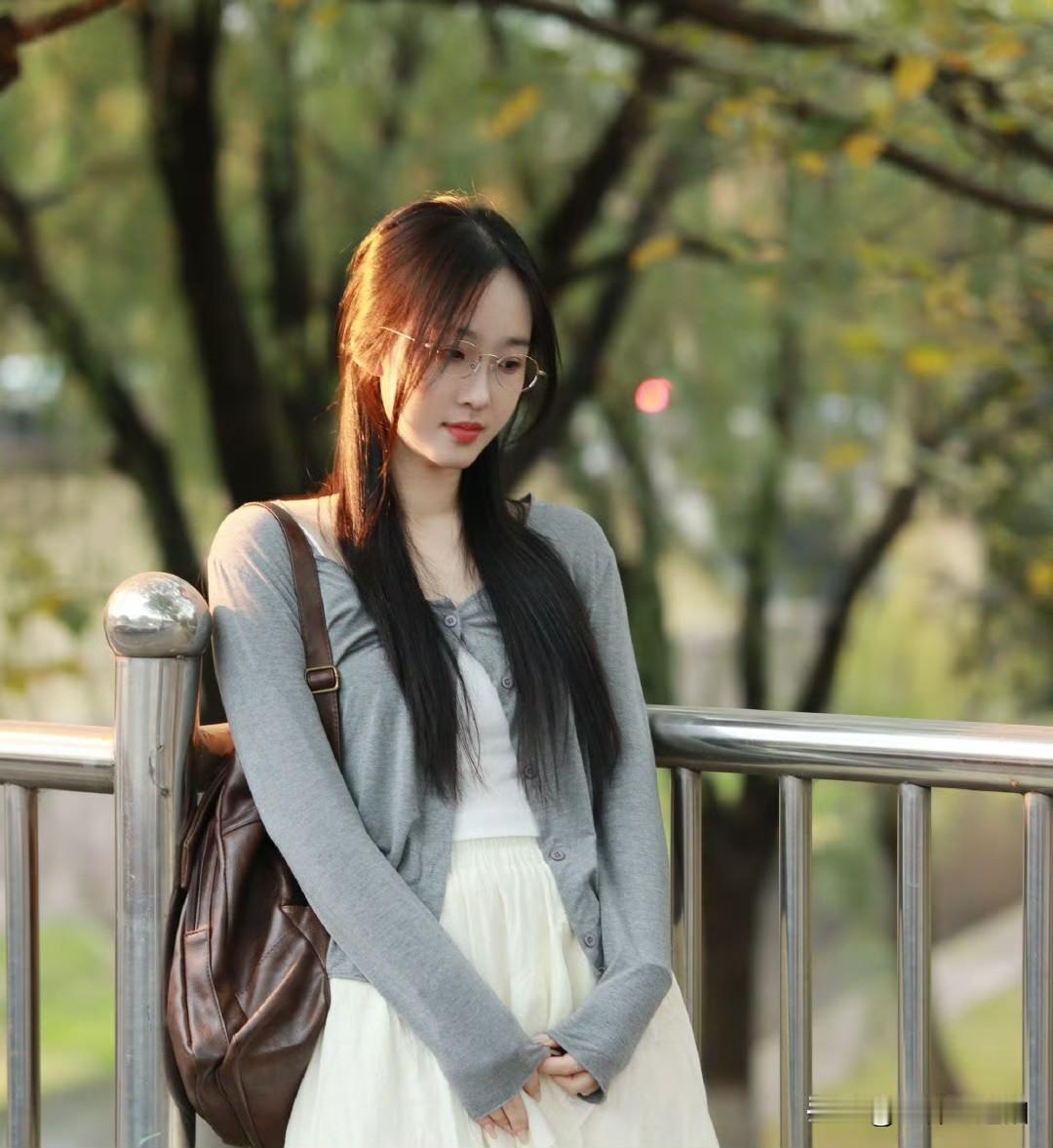 这姑娘在走廊里拍照好好看!
