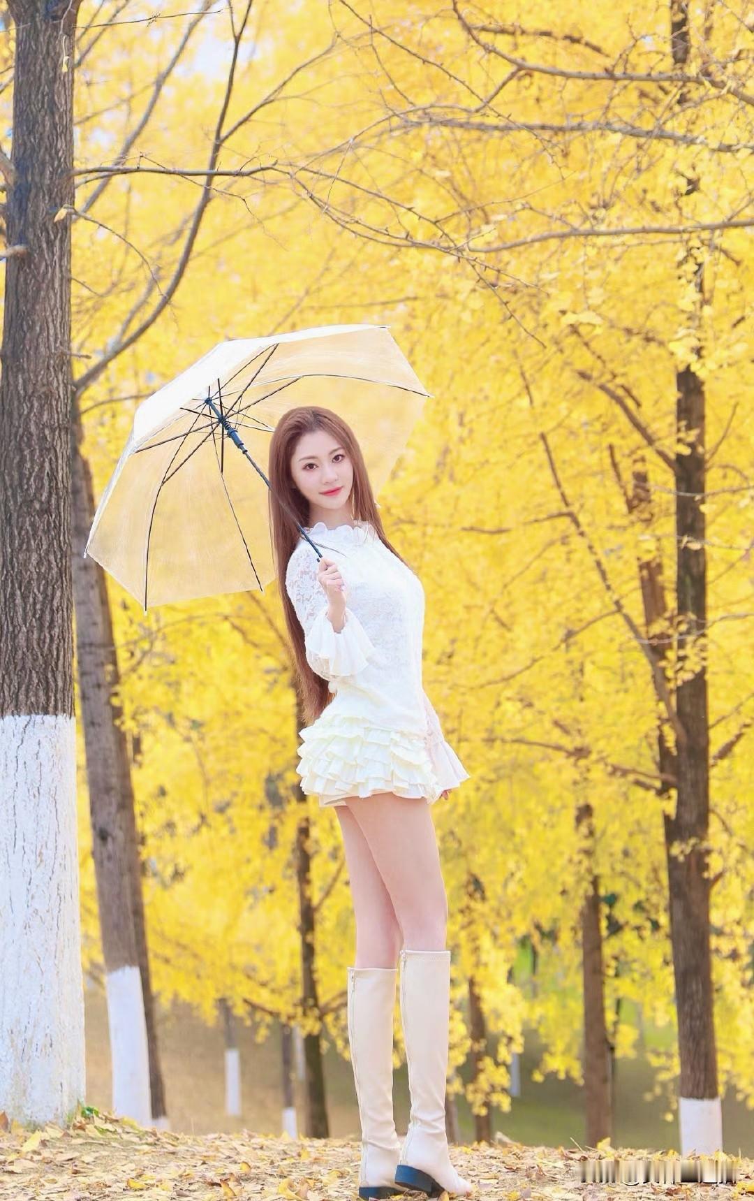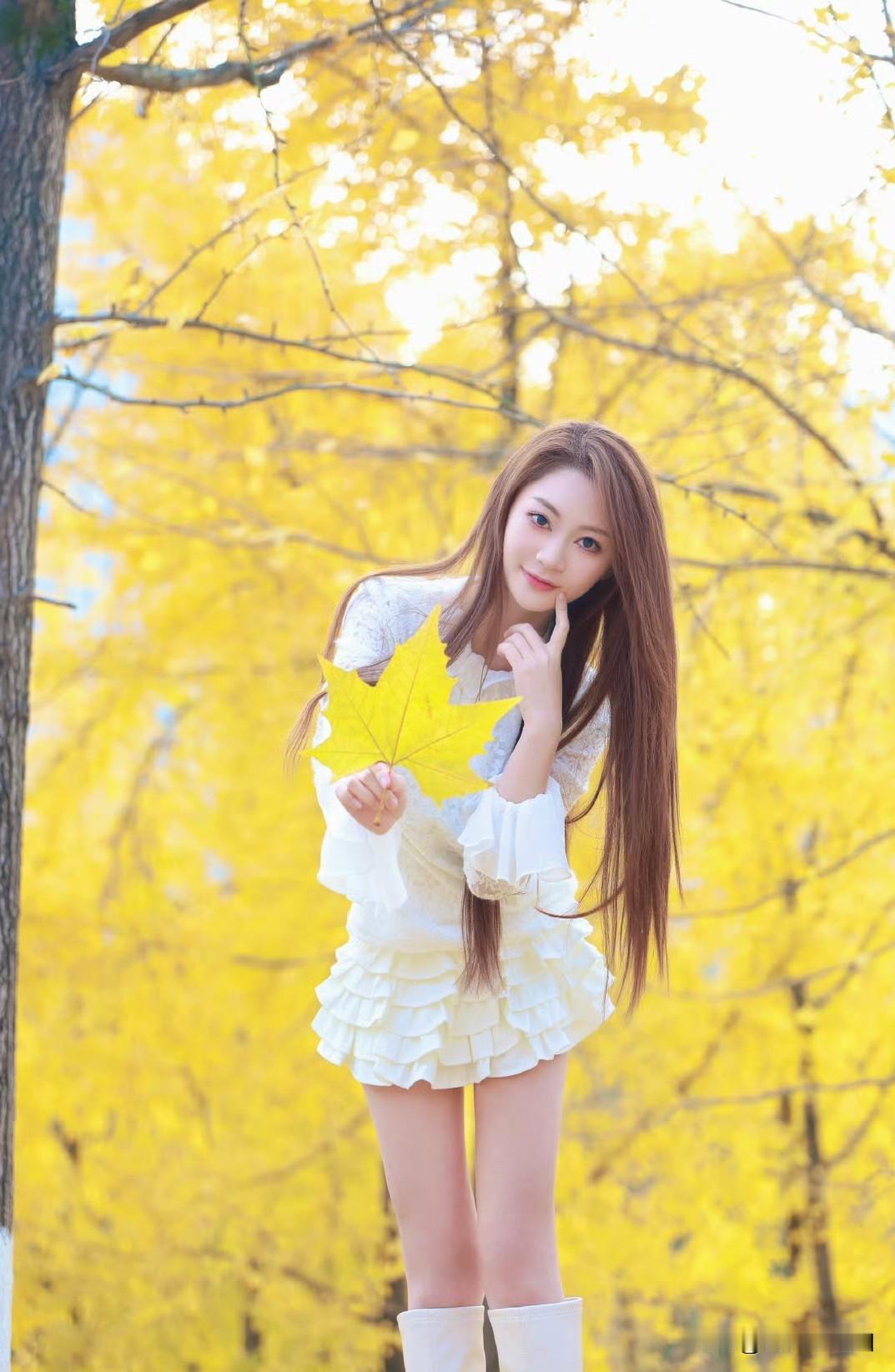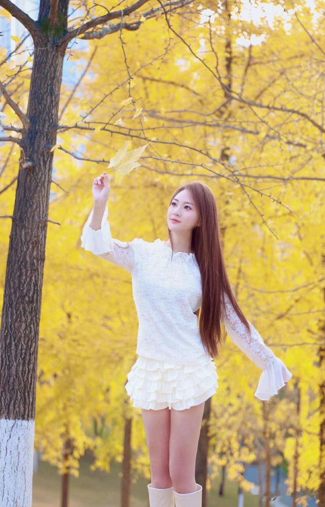 秋日暖阳下,落叶纷飞,优雅女子静坐画板旁,感受大自然的美好。