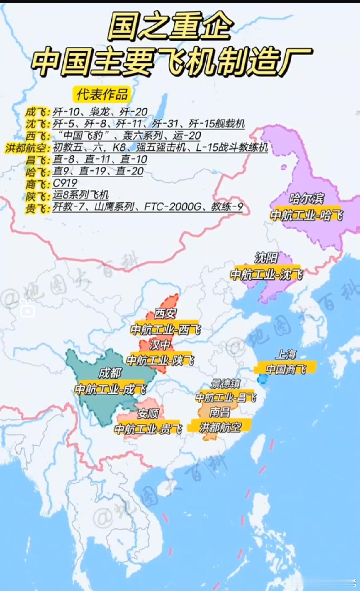 全域布局,中国飞机制造工业细思极恐!中国有飞机整机制造能力的城市包括成都、沈阳、西安、汉中、安顺、哈尔滨、南昌、景德镇、天津、上海等。其中多个城市的飞机制造能力是三线建设时候建设的。中国如此多城市有整机制造能力令人惊讶,比肩美国、甚至更多。也就是说从东北松辽平原的沈阳哈尔滨到西南云贵深山的安顺,从西北渭水之滨的西安到东部渤海之畔的天津,西南的成都、汉中、到中南的南昌、景德镇等近十座城市共同织就中国飞机整机制造的产业网络,形成覆盖东南西北的全域布局,其规模与完备度已比肩航空工业强国美国,但是地域分布却强于美国很多,彰显出令人望而生畏的工业硬实力。这个独特优势一方面是历史战略布局的远见,另一方面也蕴藏着产业链深层的核心竞争力。中国航空制造的全域布局打破了全球产业发展的常规逻辑。在市场经济主导的产业发展中,飞机制造因技术密集、协同要求高,通常仅聚焦2-3个核心城市群形成集群效应,过度分散往往会导致资源内耗、效率下降。而中国航空产业的广域分布,根源在于三线建设时期的战略抉择,上世纪六十年代起,上百个航空科研生产单位在深山峡谷、内陆腹地落地生根,十多万技术骨干扎根边远地区创业,逐步搭建起跨区域的产业骨架 。如今这份历史积淀转化为独有的韧性优势,即便面临局部供应链波动,分散在不同区域的生产基地仍能互补联动,确保整机研制、核心部件生产不受冲击,形成“东方不亮西方亮”的稳定供应体系,这是单一集群布局难以企及的战略保障。稳定的人才梯队是全域产业链的核心支撑,更是快速响应产能需求的关键。飞机制造涉及数千项精密工序,培育合格的技术工人、工艺师和生产管理人员需要长期积累,而将这支人才队伍稳定在地方,更需产业生态的持续滋养。经过数十年深耕,各航空制造城市已形成成熟的人才蓄水池,从飞机机体焊接、复合材料成型到发动机部件加工,各类专业人才扎根当地深耕不辍,积累了丰富的实操经验与管理能力 。这种人才沉淀让产能切换具备极强灵活性,无论是军机迭代还是民机量产,只需完成生产线适配调整与短期专项培训,就能快速启动新机型生产,实现“换型不换队、产能快爬坡”,大幅缩短新品落地周期。全域布局与人才储备的双重优势,赋予中国航空产业极强的产能爆发潜力。相较于单一集群需长期扩建产能、培育人才的漫长周期,中国遍布各地的航空制造基地可快速联动释放产能,比如仅C919大飞机就已形成覆盖22个省市、200多家企业的供应链网络,近20万人参与配套生产,长三角、京津冀、西部等产业集群可协同发力提升产量。随着铝锂合金、碳纤维复合材料等关键材料技术突破,航空电子元器件国产化率持续提升;再叠加数字化制造技术的广泛应用,中国航空制造的技术短板不断补齐,产业必将持续跃升。未来,不仅核心城市将进一步巩固航空产业龙头地位,部分具备特色优势的城市更有望依托细分领域突破实现爆发式增长,推动中国航空制造业总产值向万亿级规模迈进。三线建设的艰苦创业到如今歼-20、歼36领先、C919圆梦客运大飞机,中国飞机制造工业的全域布局既是历史的馈赠,更是工业实力的必然。这份跨越地域的产业韧性、沉淀多年的人才底气与潜力无限的产能空间,共同构筑起不可替代的核心竞争力,也让中国航空工业在全球产业竞争中愈发从容,向着全球航空制造创新中心稳步迈进,其崛起之势已然不可阻挡。
