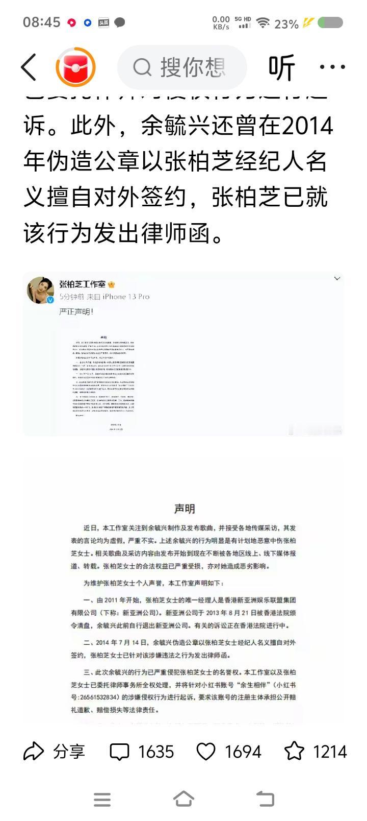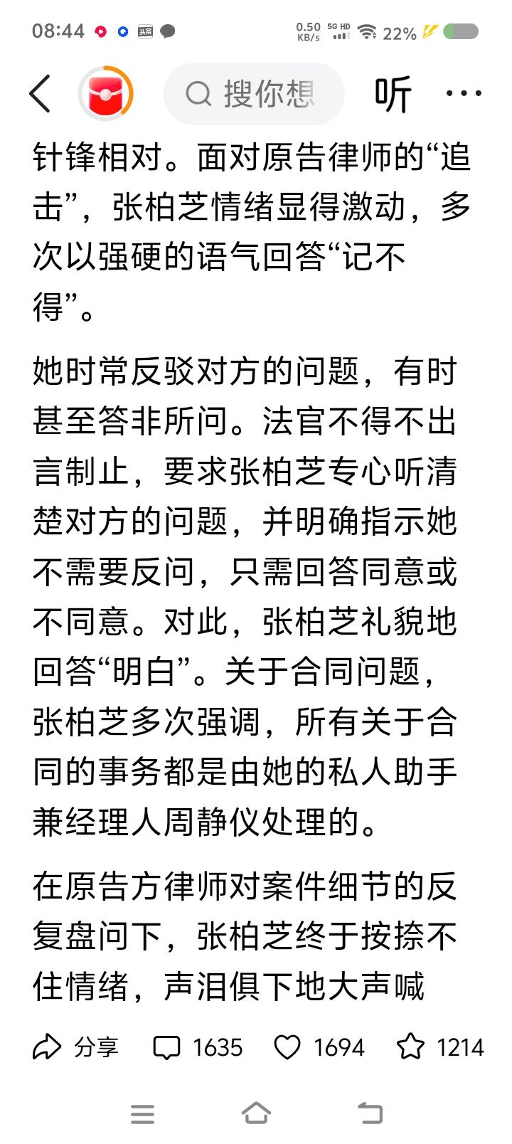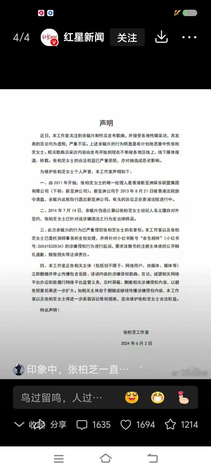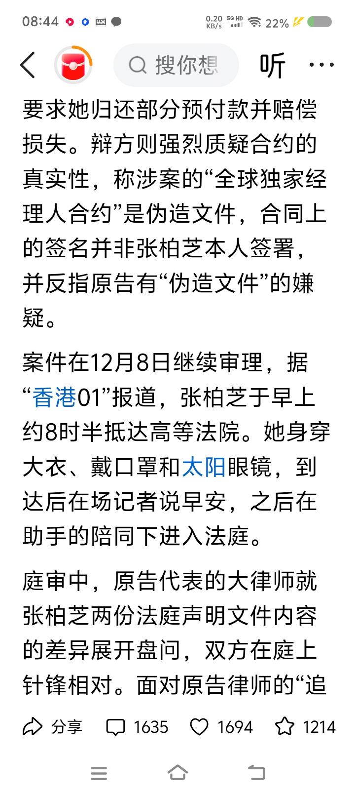 我一月三千五,怎么评论“艺人张某芝被索赔案”?—— 据报道,张某芝被前经理人及其公司告上法庭。对方称张某芝未履约,因此追讨部分片酬及索赔,数额过千万。 张辩称,“合同有问题,非本人签名;合同的事,助手负责”,“不记得了”…… 之前,张某芝发律师函,称对方存在伪造公章、擅自签约行为。 点评: 网友吵翻了,有的认为她有不当行为,有的说相信她的人品。 我能说什么?我一月三千五,为几千万片酬的明星事件发愁,合适么? 先跳出这件事,先看一下人生轨迹:毕业于外国学校;年轻时走红;牵扯进某照片事件;与明星谢某的婚姻与婚变;十几年来不时有作品,近年来上过综艺;被起诉…… 发现了没有?前期较顺利,后期较坎坷。原因复杂,肯定有个人原因。 至于这个案件,我认为,应该双方都存在问题,大概率会和解,赔付部分金额。 结论:人会吸取教训吗?
