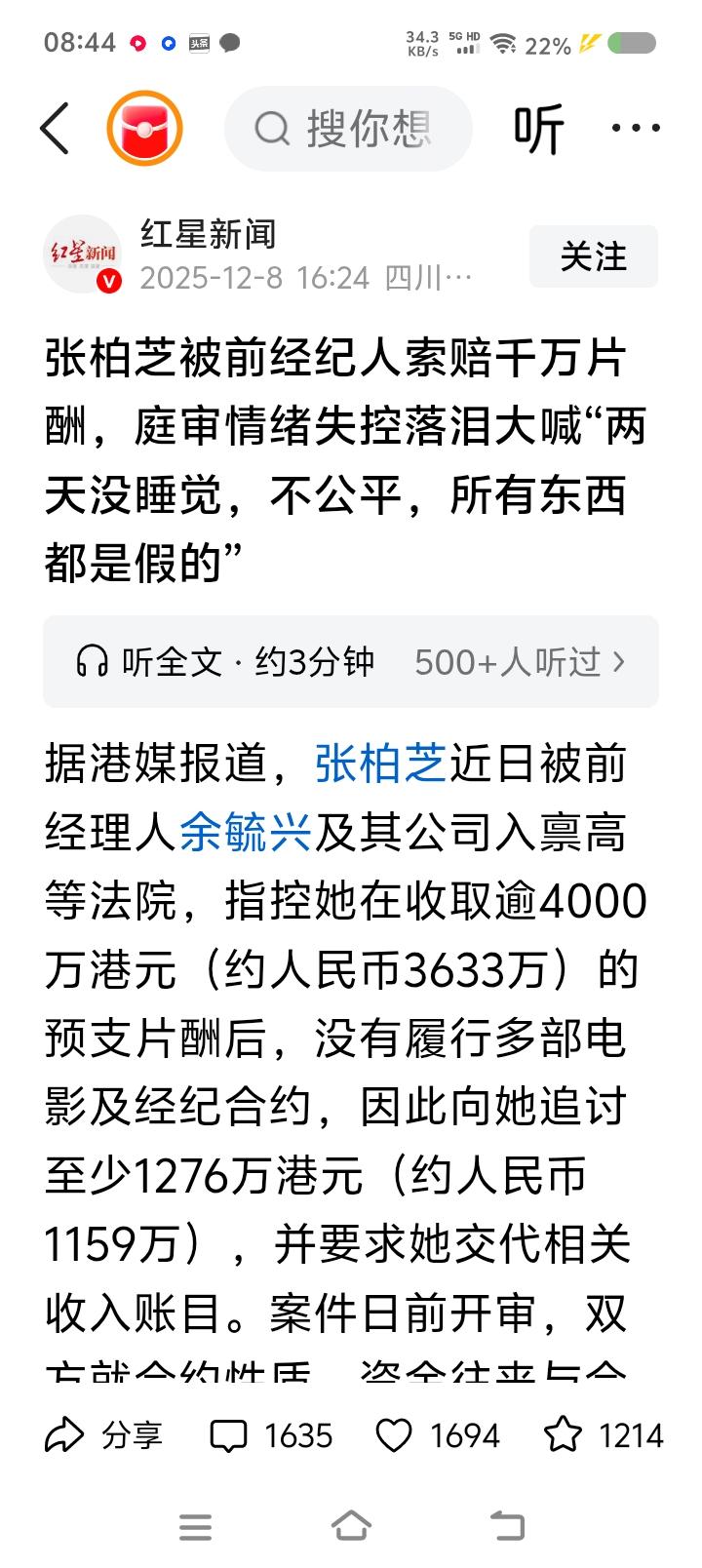 我一月三千五,怎么评论“艺人张某芝被索赔案”?—— 据报道,张某芝被前经理人及其