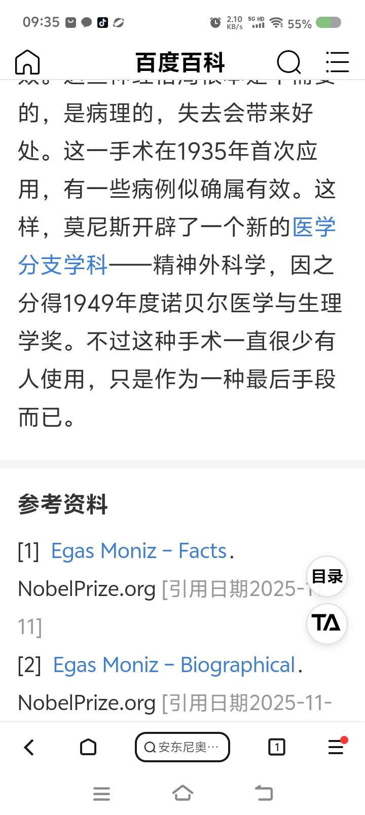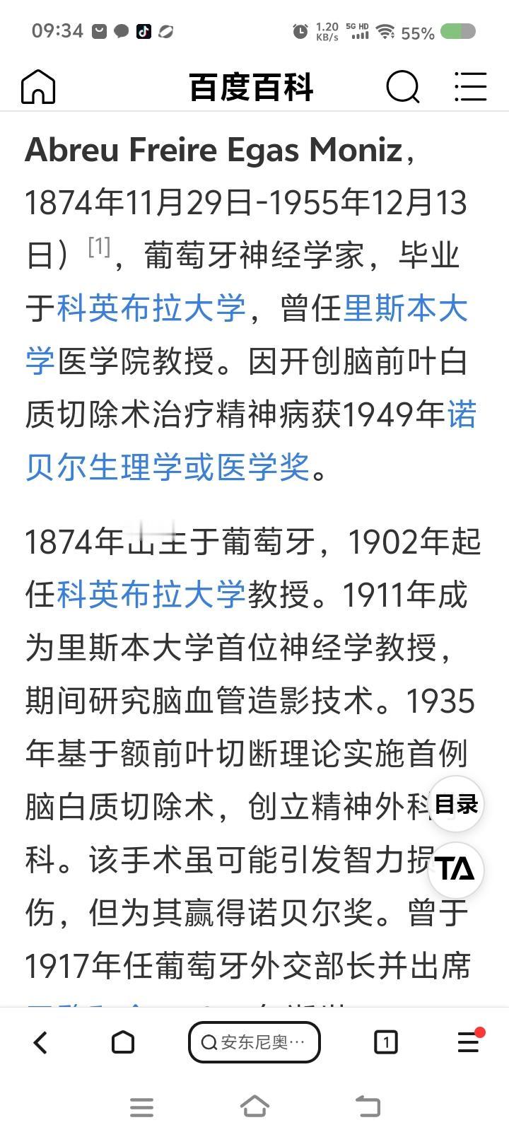 医术医德分离的诺贝尔奖获得者?—— 网上信息:葡萄牙神经学家莫尼滋认为,精神病人的额前叶没有用了,切除后可能有利。1935年首次实施了该手术,并开创了医学一个分支,精神外科学,获1949年诺贝尔奖。 后来,有研究认为,此手术可能导致智力损伤。已较少应用或遭禁。 点评: 若属实,天使?恶魔!