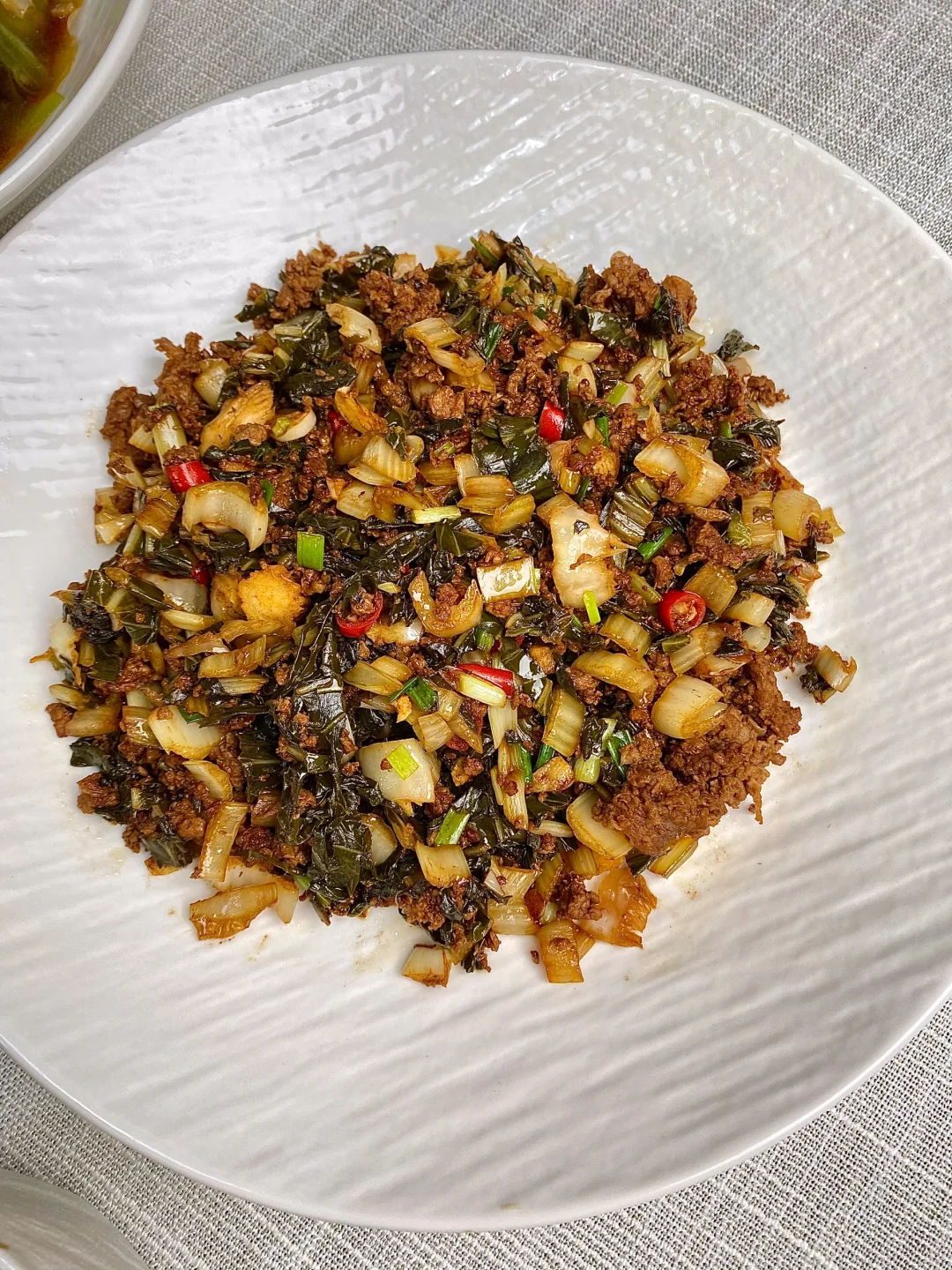 今天晚餐长这样 分享下饭家常菜教程 具体做法往后翻,每道菜都有详细的教程介绍 今日菜单: [星R]酸菜炒肉末 [星R]凉拌莴笋 [星R]蒜蓉豇豆 好好吃饭,拒绝外卖~