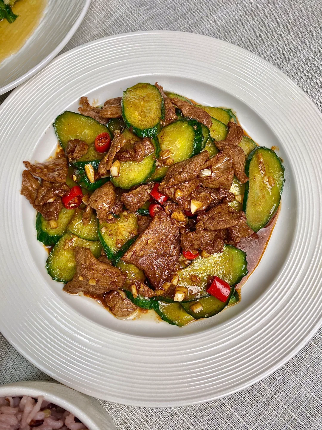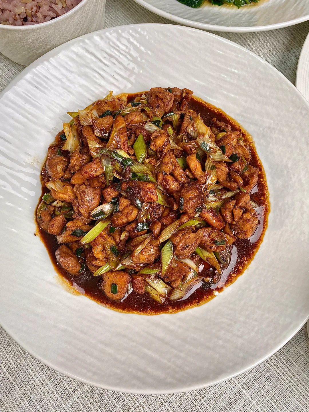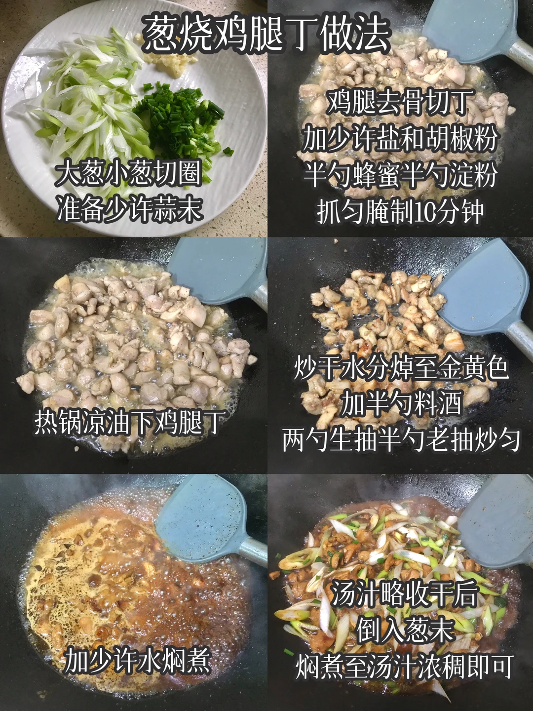 今天晚餐长这样 分享下饭家常菜教程 具体做法往后翻,每道菜都有详细的教程介绍 今日菜单: [星R]葱烧鸡腿丁 [星R]黄瓜炒肉片 [星R]蒜蓉油麦菜 好好吃饭,拒绝外卖~