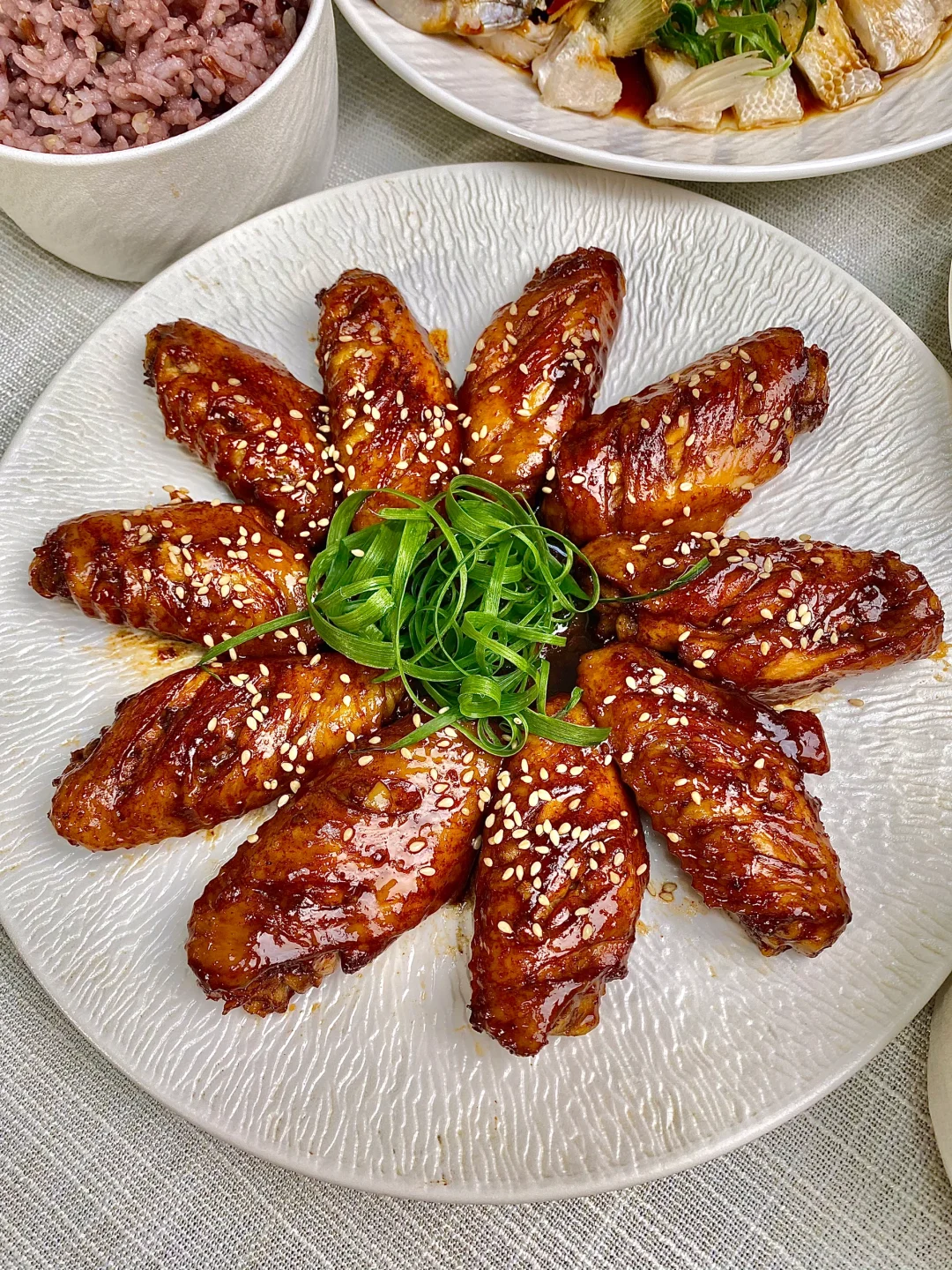 今天晚餐长这样 分享下饭家常菜教程 具体做法往后翻,每道菜都有详细的教程介绍 今日菜单: [星R]蜜汁鸡翅 [星R]爆炒空心菜梗 [星R]清蒸鲈鱼 好好吃饭,拒绝外卖~