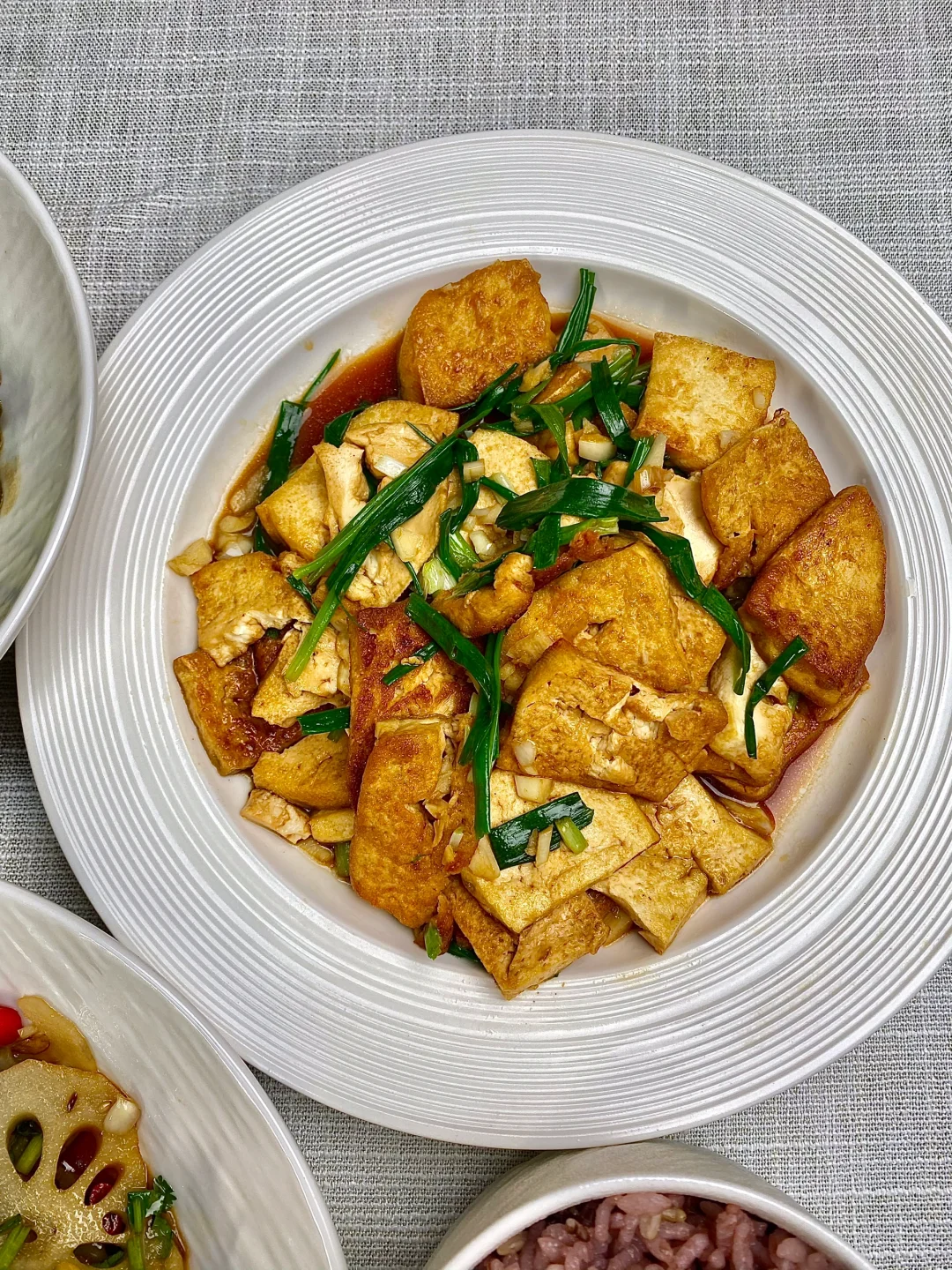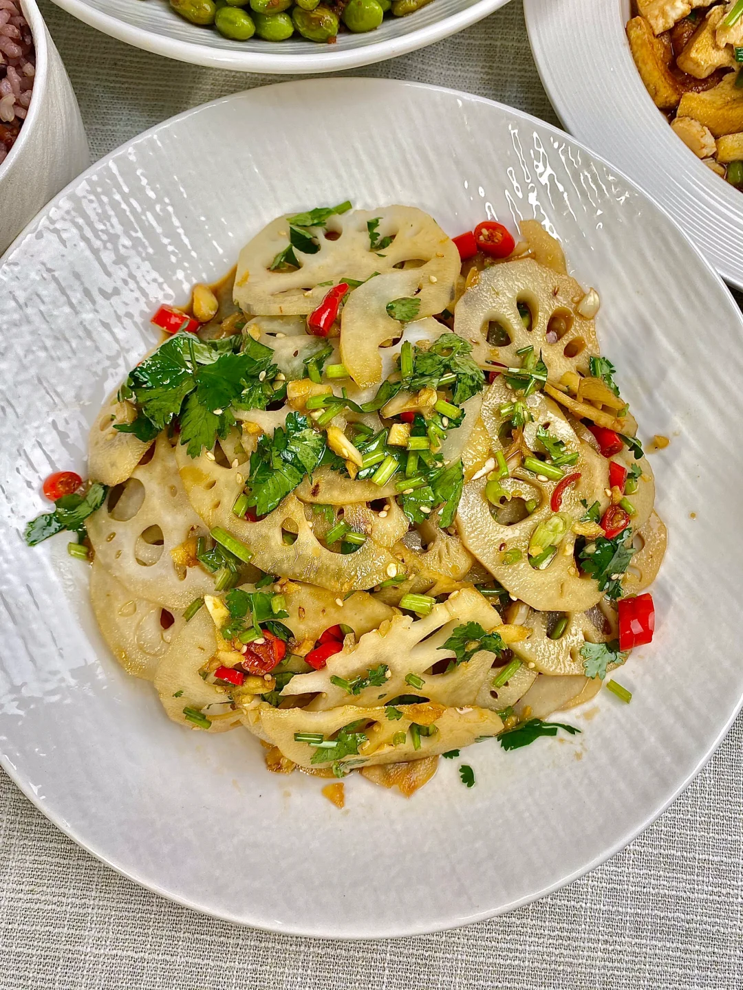 今天晚餐长这样 分享下饭家常菜教程 具体做法往后翻,每道菜都有详细的教程介绍 今日菜单: [星R]酸辣脆藕 [星R]毛豆炒肉末 [星R]香煎豆腐 好好吃饭,拒绝外卖~