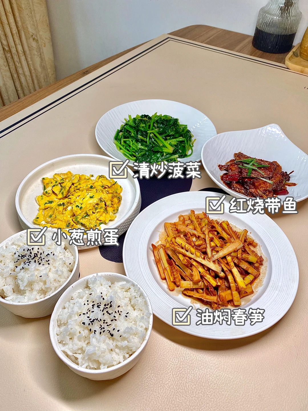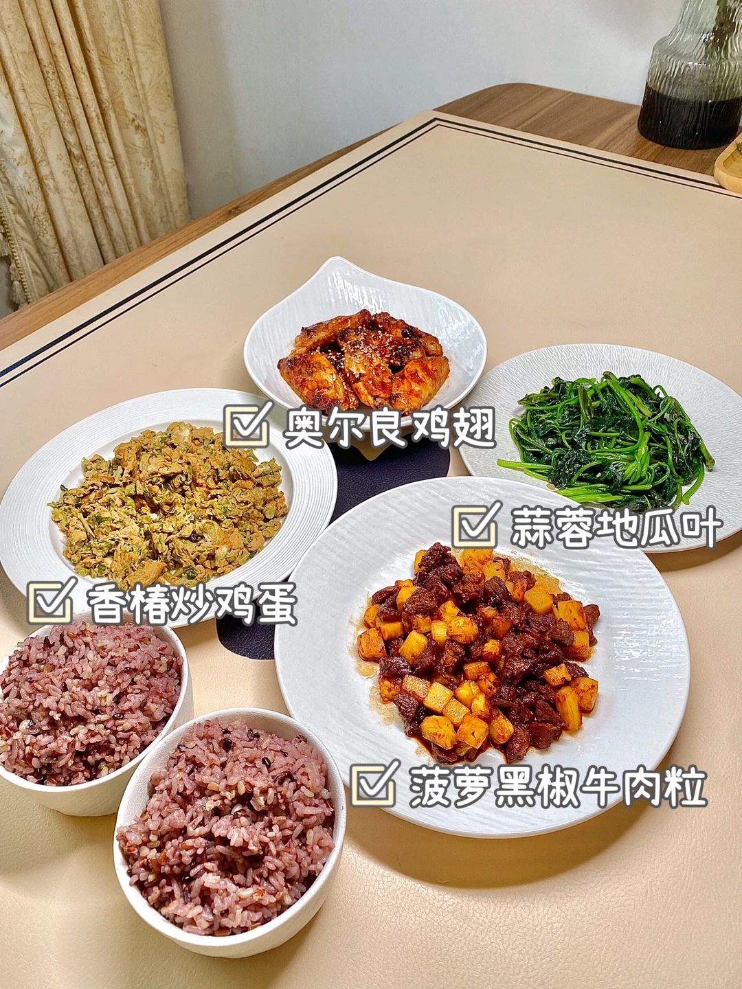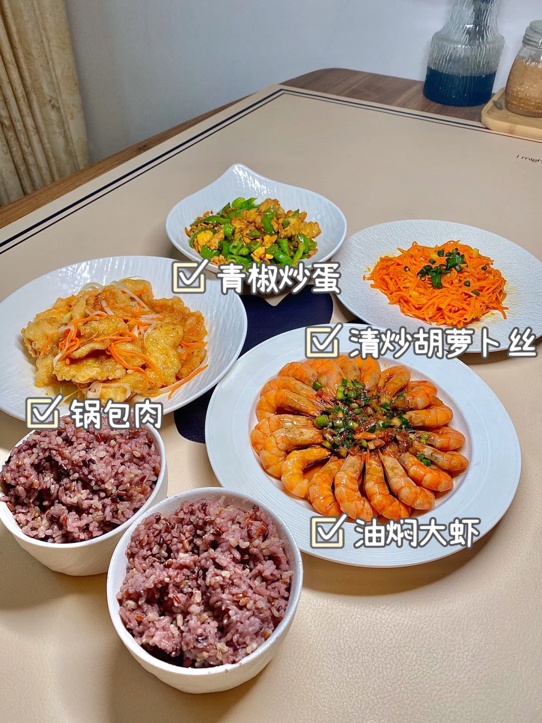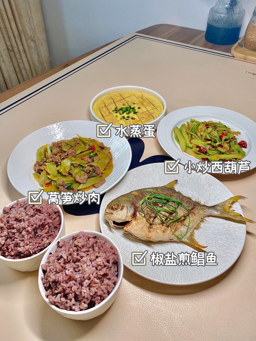 今天晚餐长这样 一周七天不重样下饭家常菜合集 做法主页都有详细的教程介绍 一周菜单合集: 1⃣️剁椒鱼头、酿豆腐 蒜香四季豆、香菜拌皮蛋 2⃣️奥尔良鸡翅、菠萝黑椒牛肉粒 蒜蓉地瓜叶、香椿炒鸡蛋 3⃣️锅包肉、油焖大虾 青椒炒蛋、清炒胡萝卜丝 4⃣️茄汁罗非鱼、玉米笋炒虾仁 香辣孜然牛肉、蒜蓉菜心 5⃣️莴笋炒肉、椒盐煎鲳鱼 小炒西葫芦、水蒸蛋 6⃣️红烧带鱼、小葱煎蛋 清炒菠菜、油焖春笋 7⃣️无水焖虾、香煎脆皮豆腐 鸡蛋扒菠菜、油焖茭白 好好吃饭,拒绝外卖~