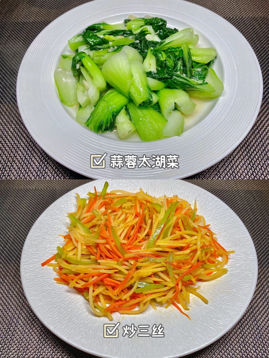 今天晚餐长这样 笔记灵感 分享下饭家常菜教程 具体做法往后翻,每道菜都有详细的教程介绍 今日菜单: [星R]小炒牛肉 [星R]可乐鸡翅年糕 [星R]蒜蓉太湖菜 [星R]炒三丝 好好吃饭,拒绝外卖~