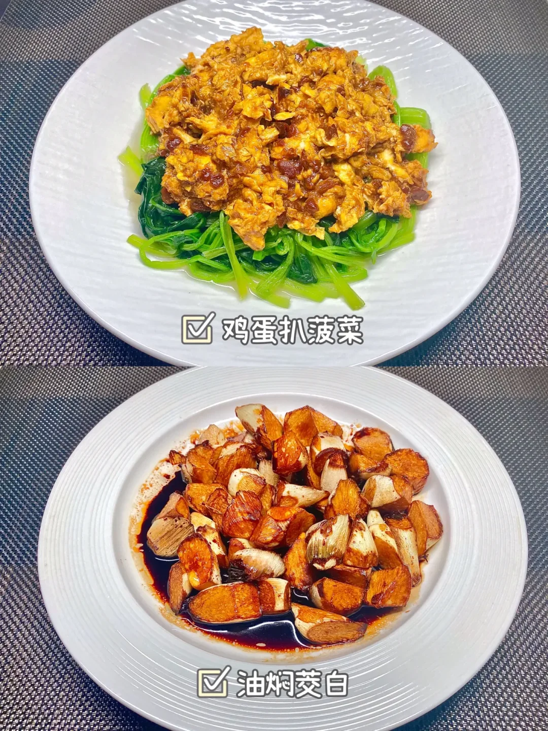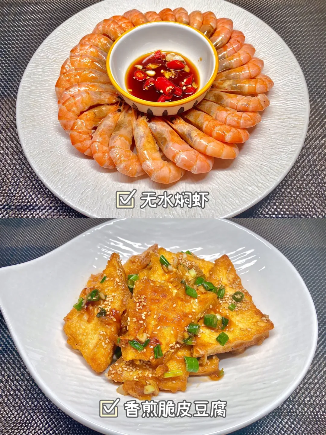 今天晚餐长这样 笔记灵感 分享下饭家常菜教程 具体做法往后翻,每道菜都有详细的教程介绍 今日菜单: [星R]无水焖虾 [星R]香煎脆皮豆腐 [星R]鸡蛋扒菠菜 [星R]油焖茭白 好好吃饭,拒绝外卖~