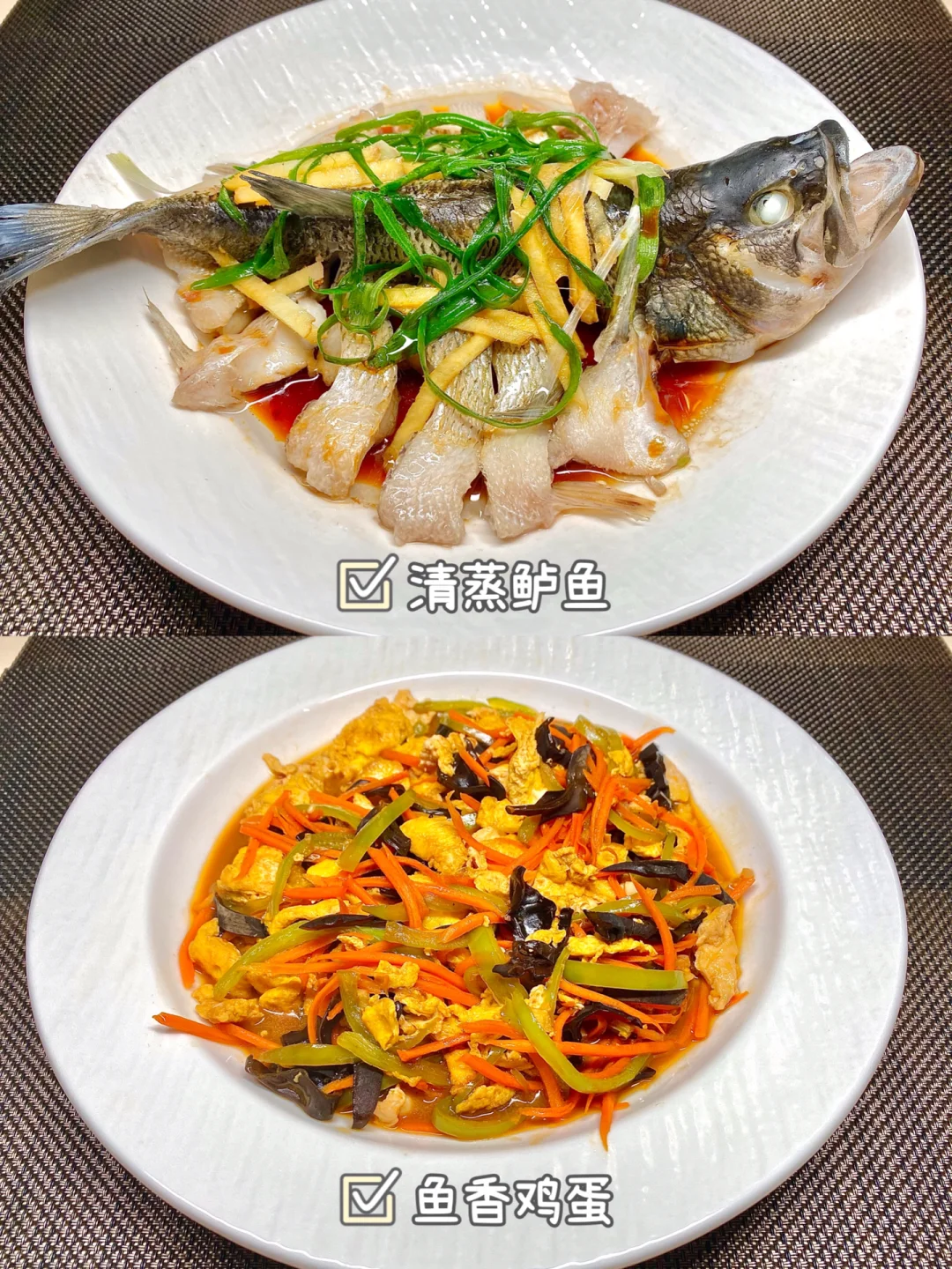 今天晚餐长这样 分享下饭家常菜教程 具体做法往后翻,每道菜都有详细的教程介绍 今日菜单: [星R]清蒸鲈鱼 [星R]鱼香鸡蛋 [星R]马兰头拌香干 [星R]蒜蓉西兰花 好好吃饭,拒绝外卖~