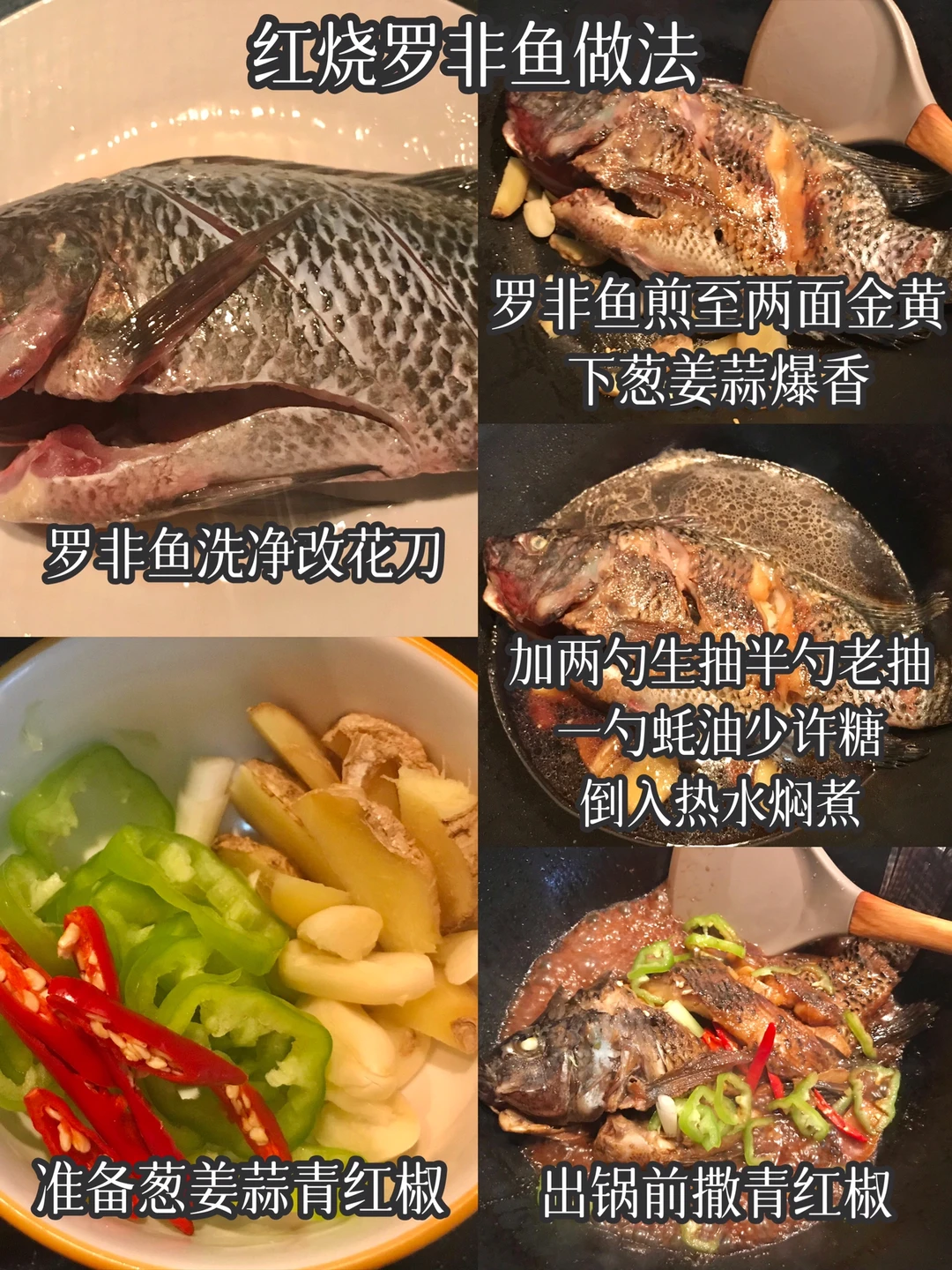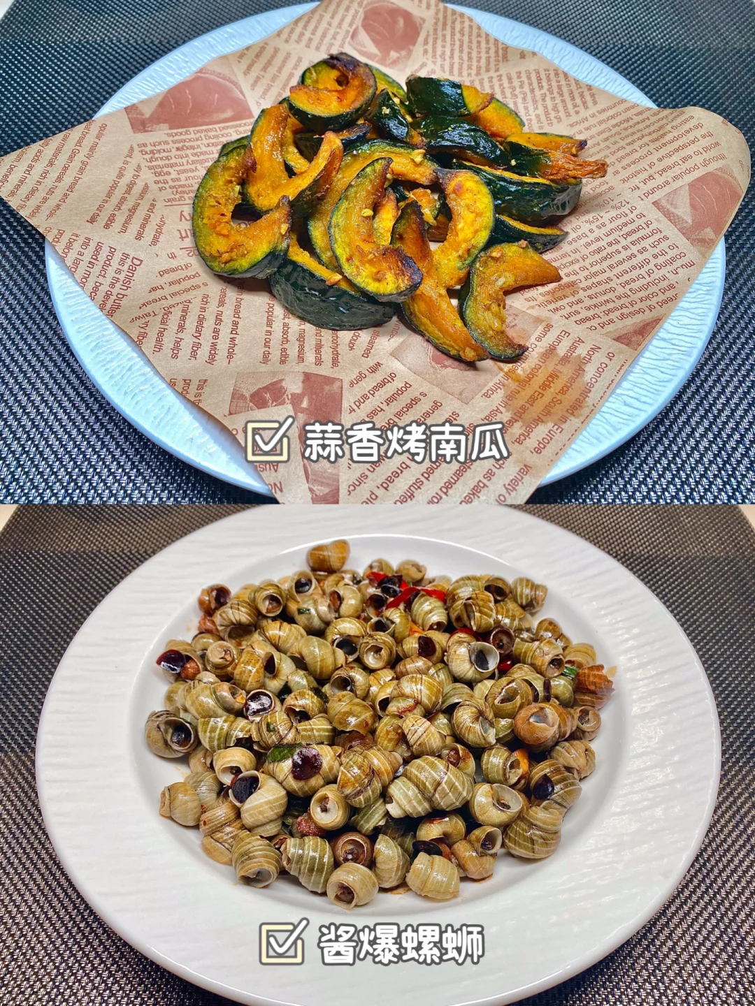 今天晚餐长这样 笔记灵感 分享下饭家常菜教程 具体做法往后翻,每道菜都有详细的教程介绍 今日菜单: [星R]红烧罗非鱼 [星R]青椒土豆丝 [星R]蒜香烤南瓜 [星R]酱爆螺蛳 好好吃饭,拒绝外卖~