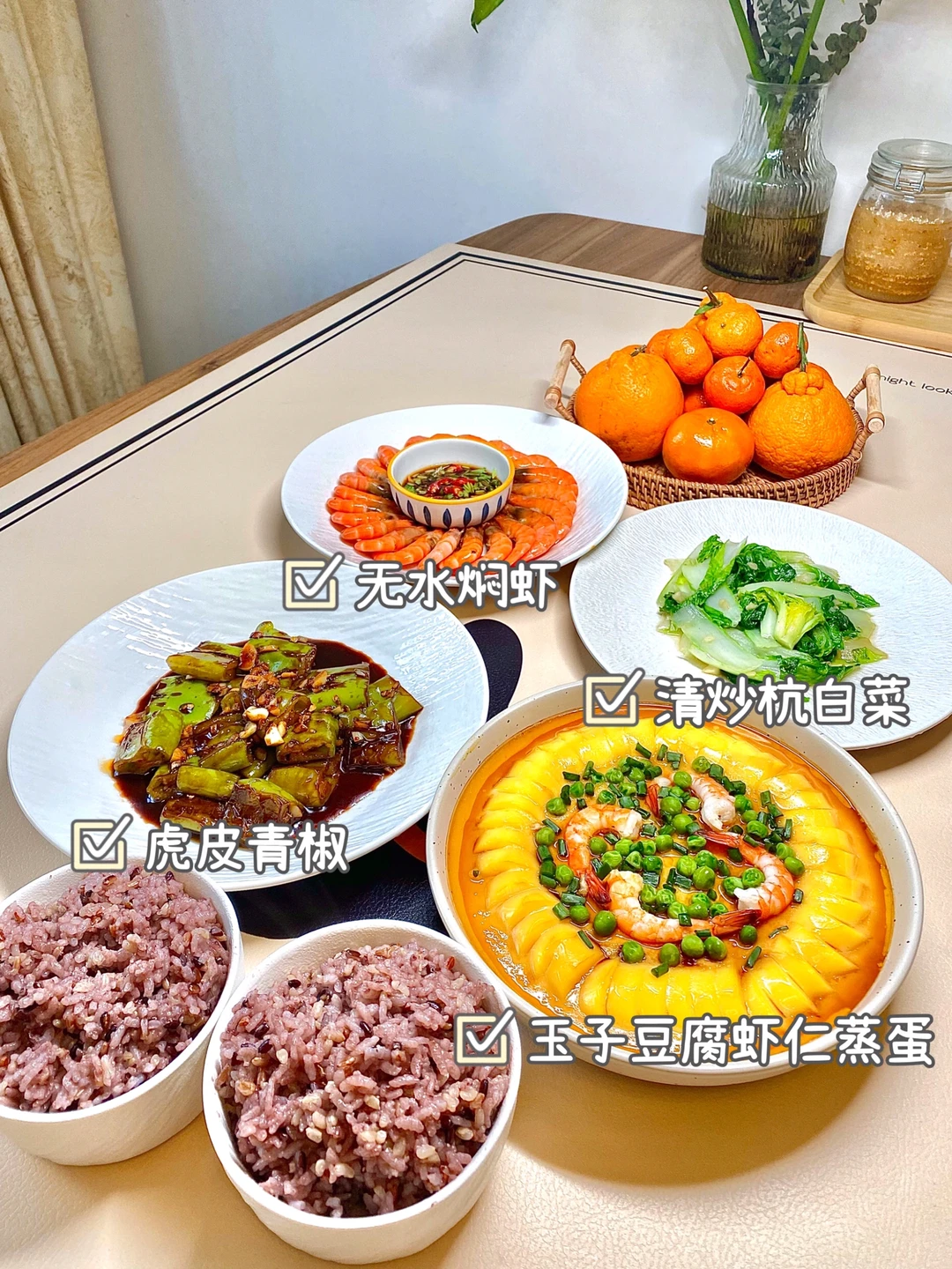 4⃣️玉子豆腐虾仁蒸蛋、虎皮青椒