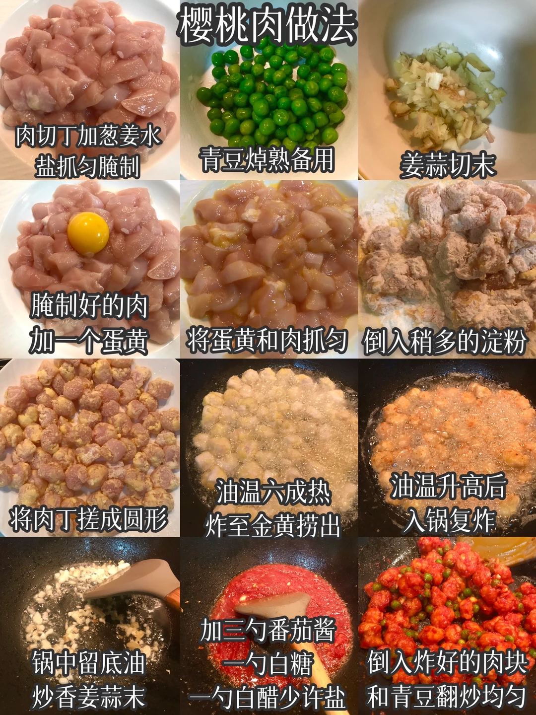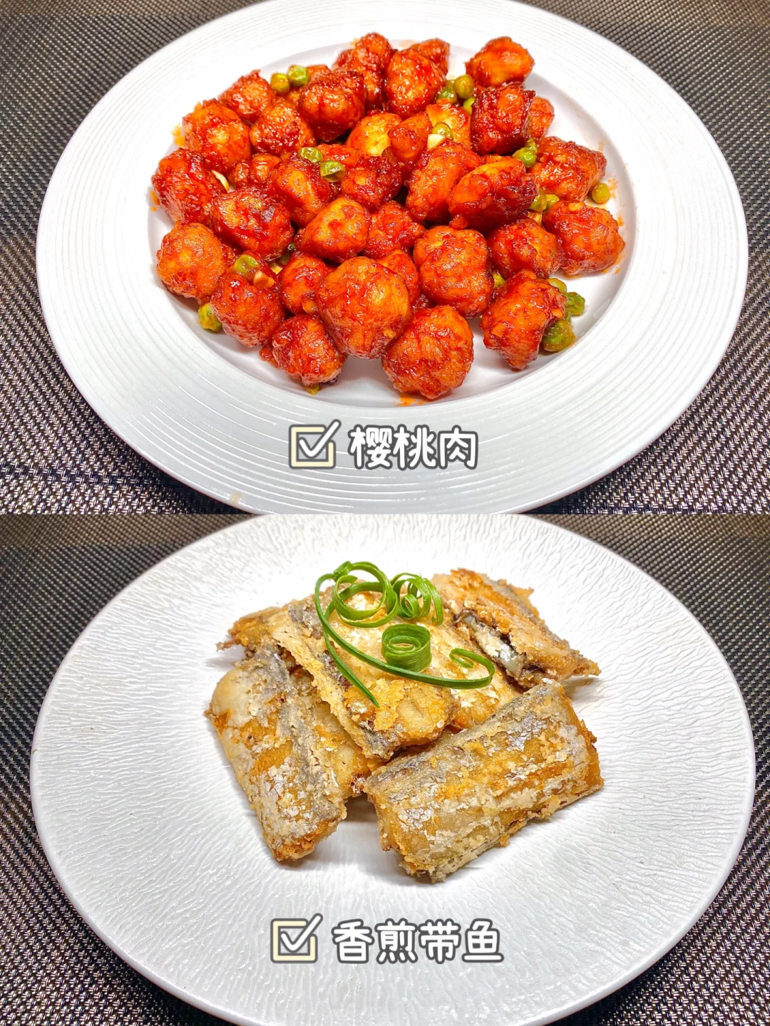 今天晚餐长这样 笔记灵感 分享下饭家常菜教程 具体做法往后翻,每道菜都有详细的教程介绍 今日菜单: [星R]樱桃肉 [星R]香煎带鱼 [星R]蚝油青菜 [星R]醋溜豆芽 好好吃饭,拒绝外卖~
