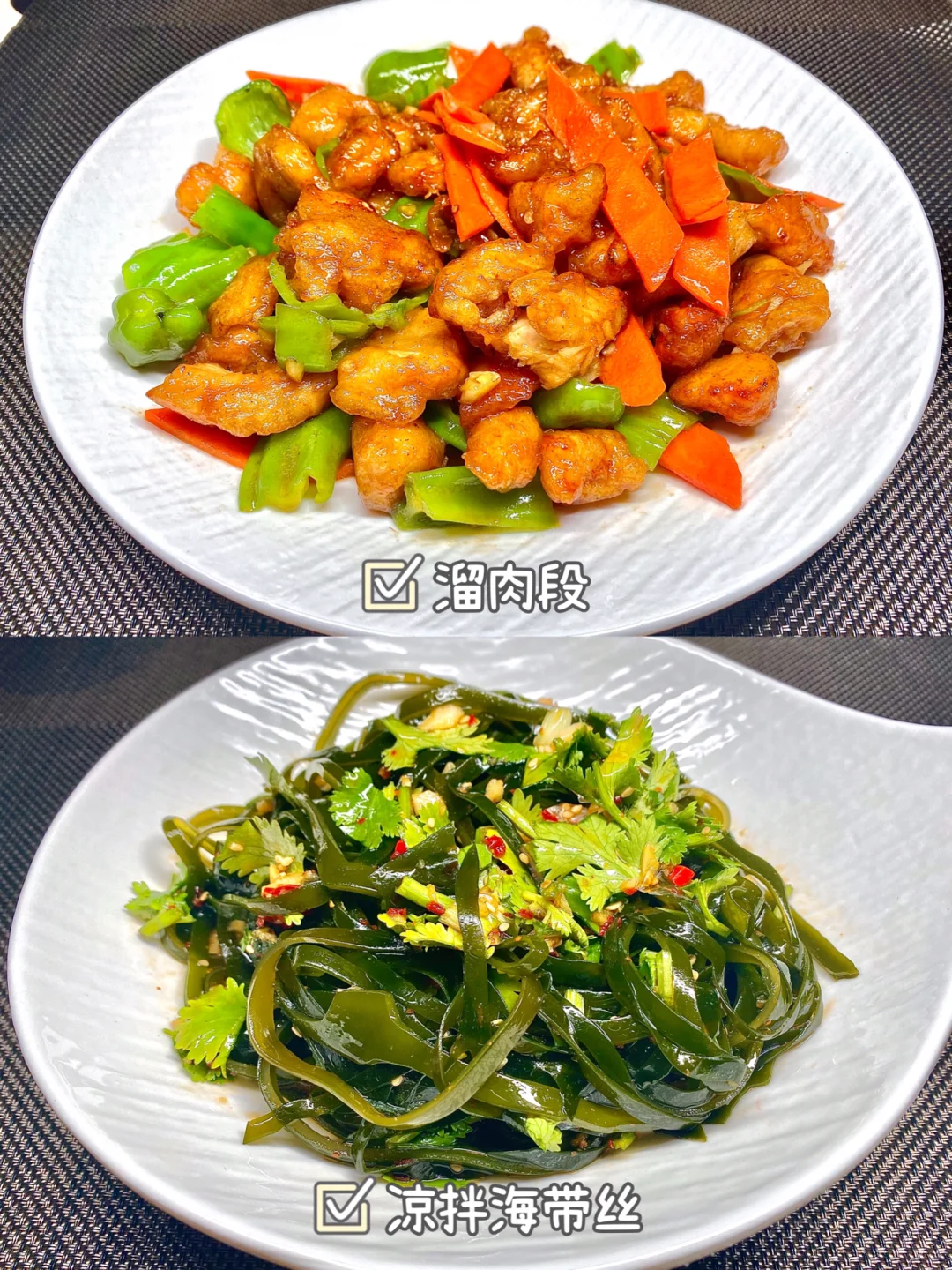 今天晚餐长这样 笔记灵感 分享下饭家常菜教程 具体做法往后翻,每道菜都有详细的教程介绍 今日菜单: [星R]溜肉段 [星R]凉拌海带丝 [星R]洋葱孜然牛肉 [星R]干煸四季豆 好好吃饭,拒绝外卖~
