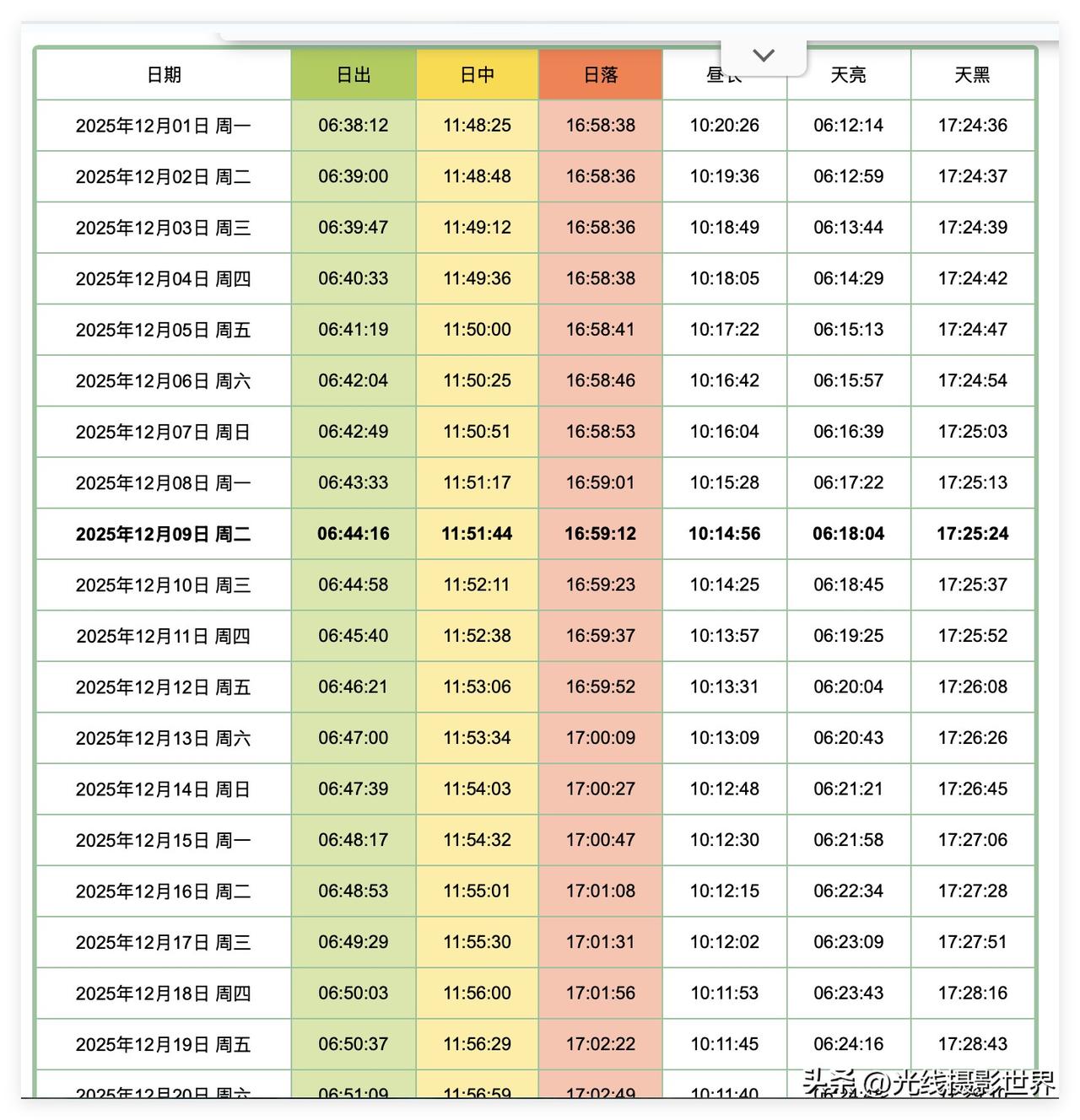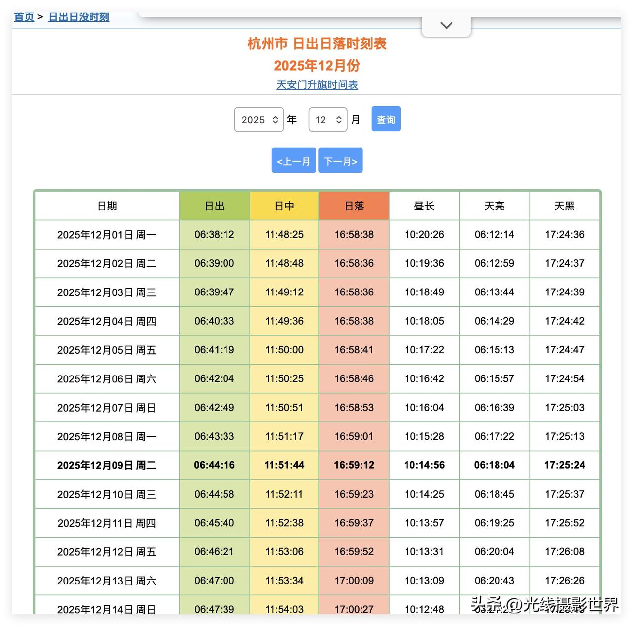 12月9日,星期二,浙江省杭州市,日落时间是下午16:59:12……前些天,曾经
