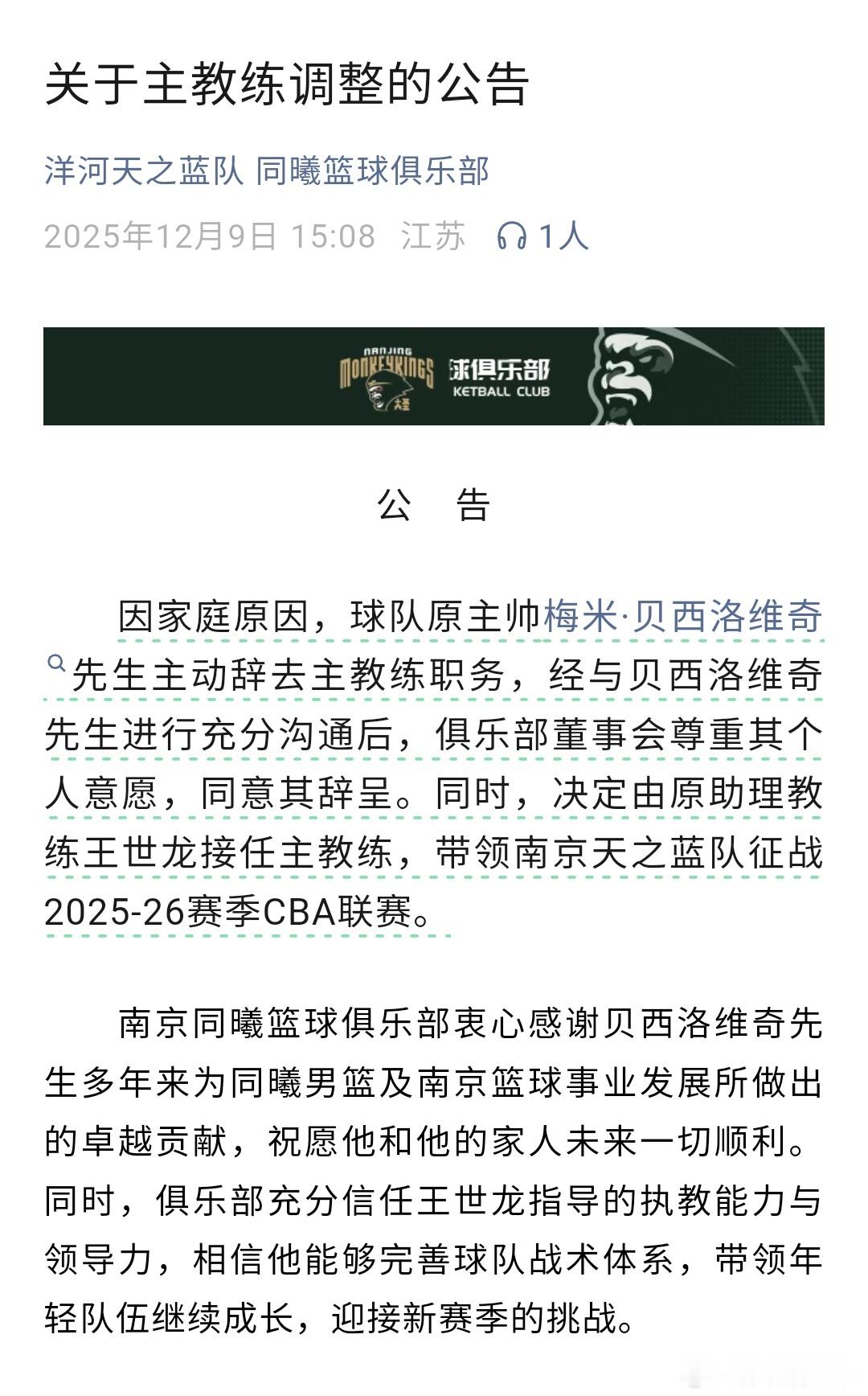 同曦官宣贝西洛维奇下课。理由当然是主帅最常见的辞职理由之一“因家庭原因”(另一个当然是“因身体原因”),尽量给双方留足体面。分歧或早已存在,从王世龙加入同曦那一刻起,贝帅的命运就已注定,而在CBA俱乐部杯赛输给NBL球队,则成为压垮骆驼的最后一根稻草。今年的CBA俱乐部杯赛是各队检验外援成色和教练捏合阵容能力的热身赛,赛季尚未开打,贝帅就已率先下课,不知道下一个被调整的会是哪位教练或外援?
