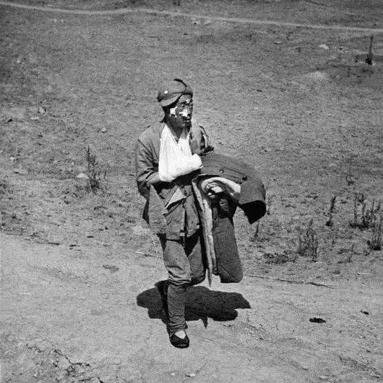 台儿庄, 一位刚下火线的战士, 有包扎, 有棉衣, 应该是嫡系部队的吧。 不知他叫什么名字? 不知他的家乡是哪? 不知他后来怎样了? 致敬英雄! 之前,去过台儿庄,有一个小姑娘才18岁就牺牲在那里,随身携带的书信因为意外变得模糊不清,最后过了66年才魂归故里。 她的名字, 叫刘守玟。