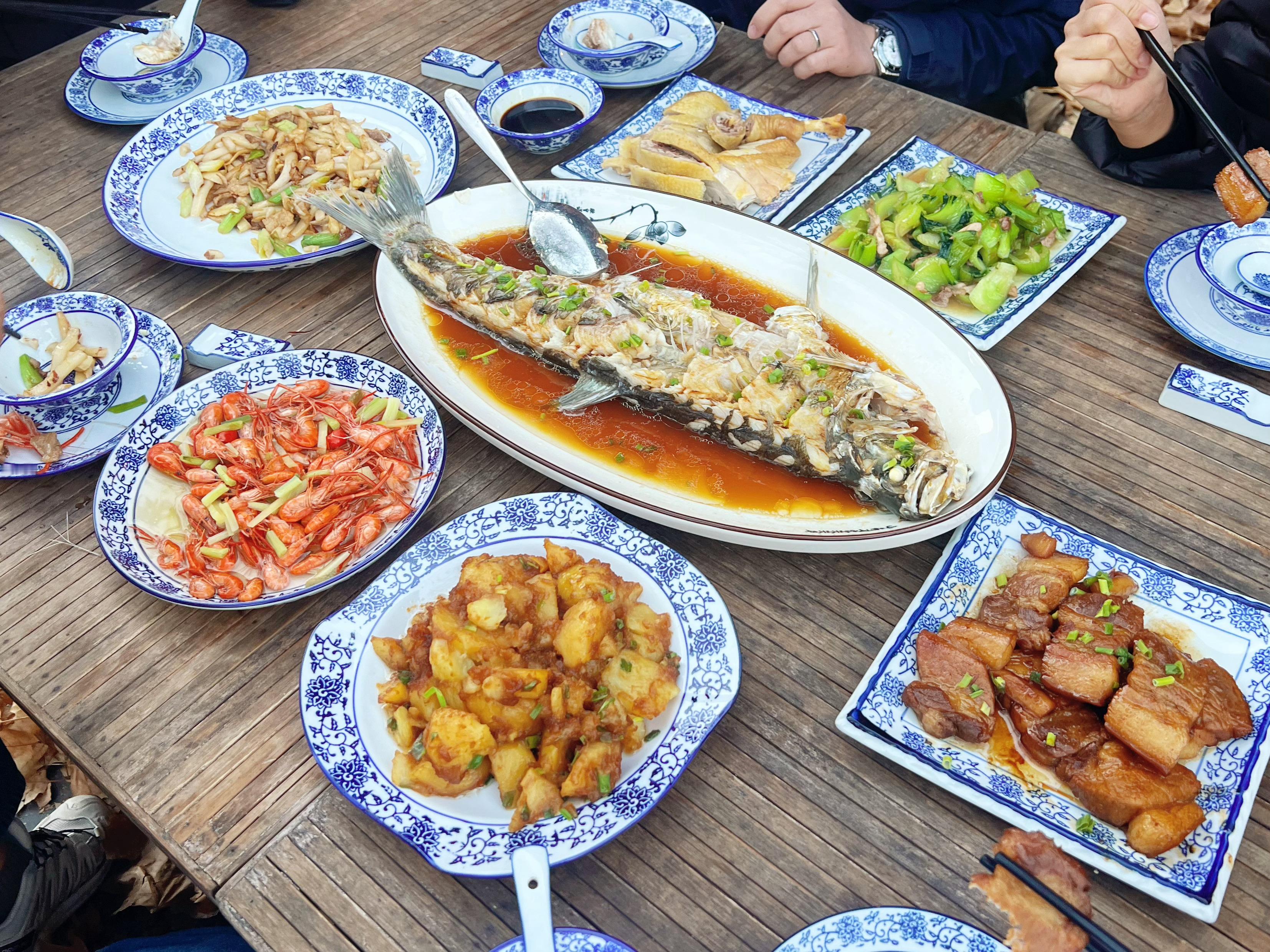 开Z20四明山兜一圈,来朋友这里待会儿。图5每道菜的食材要么自家养的,要么水库小溪里捞的,绝了 汽场全开 宁波·拾山苑