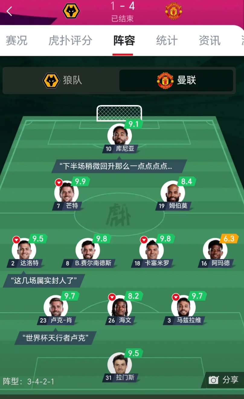 曼联:计划有变,准备争冠!还是那句话,当你觉得他不行的时候他又行了。 说实话,以曼联现在的阵容,打到这个位置,我觉得足以说明阿莫林真是不错的教练。 曼联现在已经慢慢的走上正轨了,希望管理层有充足的耐心。 其实赛季初很多人还喷阿莫林让B费踢后腰就是瞎搞,不过从目前来看,b费打后腰比打前腰好,后场断球转入快反那下基本就是b费一脚出,然后b费再往前跑。如果他在前面,后场就没人有这个精度的出球,曼联只能打回传控,我觉得b费后撤是阿莫林成功的安排。 我觉得如果曼联能保持这个良好的势头,欧冠资格不再是梦。