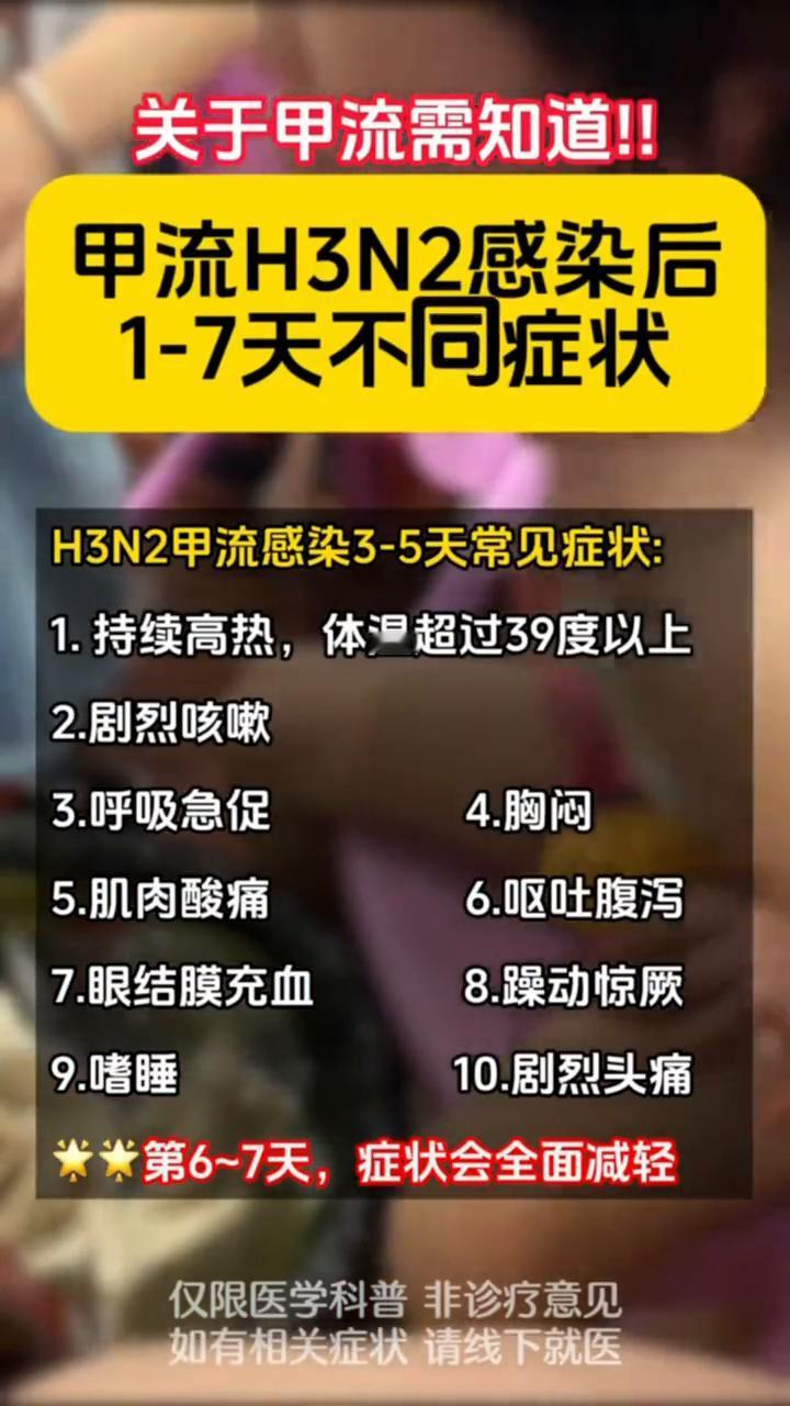 关于甲流需知道!甲流H3N2感染后1-7天不同症状。 H3N2甲流感染后潜伏期多