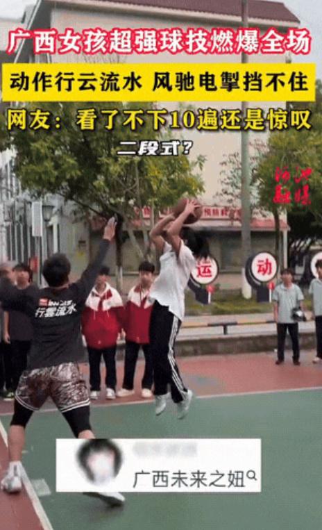 万万没想到!近日广西一伙男生正在球场上打篮球,一位女生走过来说让我试试吧,围观的其他学生小声的说,就她这样,个子这么矮,还戴着近视眼镜,会打篮球吗?结果女生一阵操作让围观的人彻底傻眼! 广西一个阳光刺眼的室外篮球场上,本来是满满力量碰撞的男子对抗,却被一个出乎意料的“小插曲”彻底打乱了节奏。 画面看上去让人难以置信——一边是一群汗水湿透衣服、肌肉紧绷的男生,另一边站着一个瘦小的女生,戴着黑框眼镜,身形单薄,几乎让人怀疑她能不能稳稳拿住篮球。视觉上的反差,让人下意识地低估了她。 她小心地走上场,声音轻轻说了句“让我试试”,那一刻,空气似乎都停了一下。 周围的人开始窃窃私语,有人嘀咕“这小姑娘来凑什么热闹”,有人盯着她的眼镜和个子,断定她大概率连球都控不住。场上的男生大多数也没当回事,心里想着“陪她玩玩就好”,根本没当真。 偏见越深,现实就越直接地打脸。篮球一到她手里,所有人的预测都落空。原本预期的笨拙运球和犹豫动作全没出现,取而代之的是流畅自然、节奏感极强的运球。 她接球转身,轻巧地在三分线外起跳出手,动作干净利落,没有一点拖泥带水。篮球划过一道完美弧线,直接空心入网。全场原本的窃笑瞬间消失,取而代之的是目瞪口呆。 这只是开始。如果有人以为那只是侥幸,她接下来的表现彻底打破了怀疑。 一位男生出于面子心态,用身高优势试图一对一防守她,结果完全被她晃开。 她懂得控制节奏,忽快忽慢、左右变向,防守的男生几乎失去重心,好几次想伸手都碰不到球。 突破到篮下,她完成了一记几乎完美的上篮,腰腹发力和手感结合得恰到好处,即便在狭小空间里也显得游刃有余。 场边的气氛从最初的嘲笑慢慢转为震惊,最后彻底失控。那些刚才指指点点的男生,现在嘴巴张大,抱着脑袋不敢相信自己的眼睛。 手机镜头完整记录下这一幕,无论防守如何调整,始终挡不住她连续得分的节奏。她的动作,让“风驰电掣”“游刃有余”变得具体可感,也让全场的轻视彻底消失。 视频上传网络后,引起热议。大家一遍遍回看,有人惊呼这是“国家队遗珠”,难以相信她只是普通女学生。问她秘诀,她却回答得非常简单:没有捷径,没有神奇天赋,只有每天坚持。她从小喜欢篮球,不管别人怎么看,每天都坚持练一两个小时。那些看似轻松的变向和上篮动作,背后都是无数清晨和傍晚独自挥汗的累积。 这个故事,让“不可以貌取人”变得生动可感。她用看似柔弱的外表,完成了最硬气的事情。这一记漂亮的得分,不只是投进篮筐,更投进了每一个因为偏见而犹豫的人心里,让人相信真正的实力从不需要包装,它自会说话。