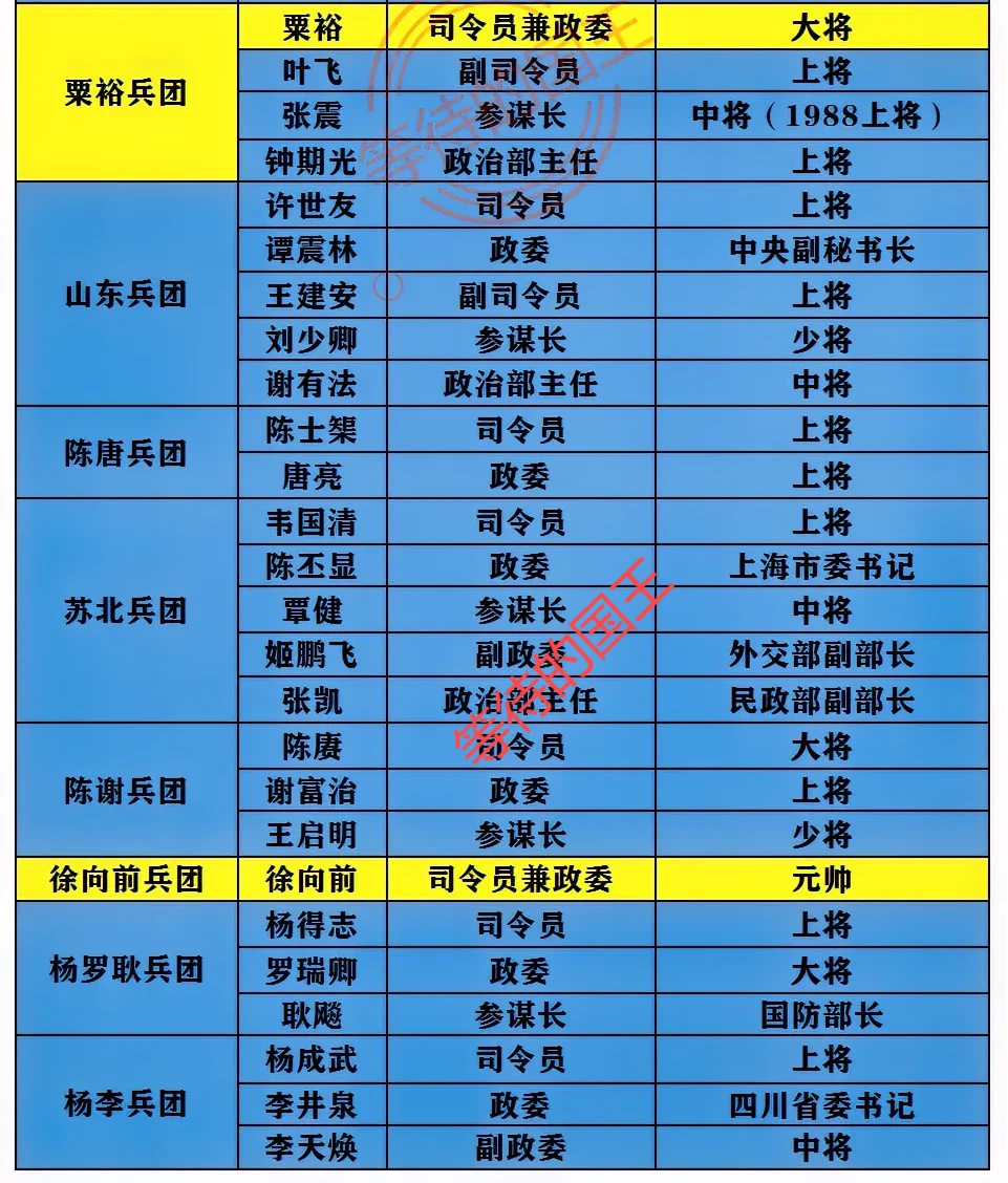 如图所示,我军最早成立的十一个兵团简介一览图。一共11个兵团,其成立时间基本都在1948年左右,而我们熟知的各大野战军19个兵团成立时间是在1949年。虽然是以这11个兵团为基本框架,但是变化还是非常大的。不仅仅是兵团数量增加了,还有许多兵团的司令员也发生了变化。值得一提的就是许世友上将,很多人都说他没有当过兵团司令员,其实他不仅当过,还是最早的一批。并且在抗美援朝后期,他还曾担任过第三兵团司令员。