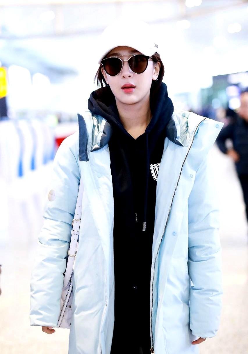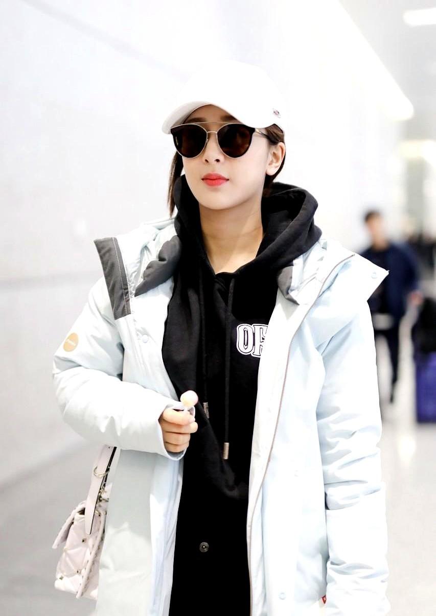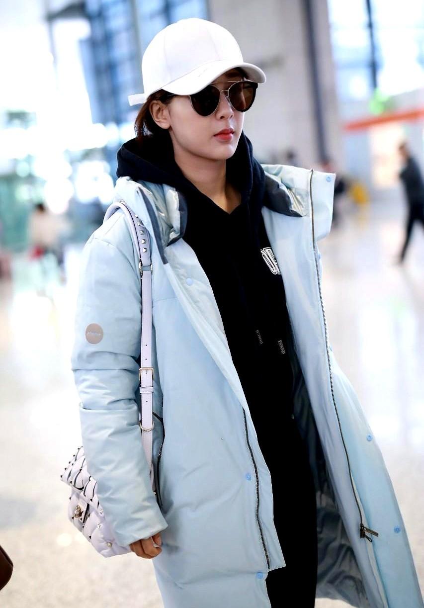 杨紫这套机场穿搭,普通人太好学了! 她那件白色羽绒服是哑光面料,一点不显臃肿,