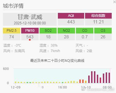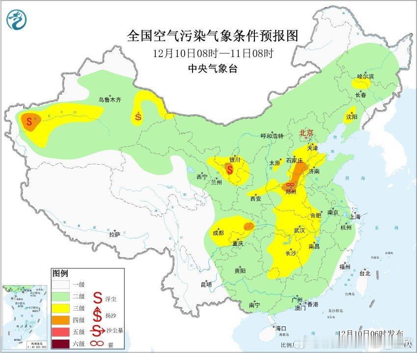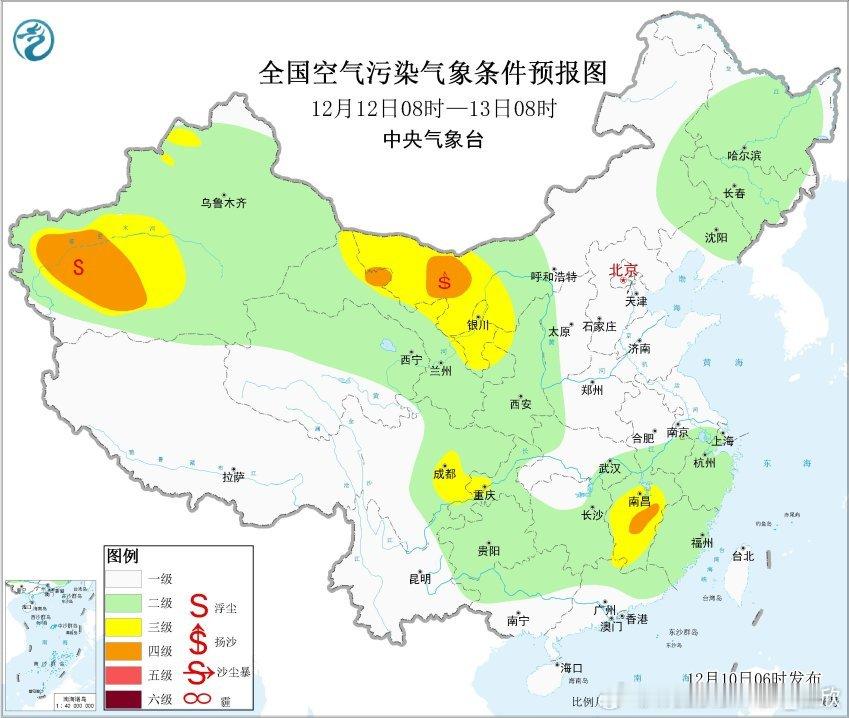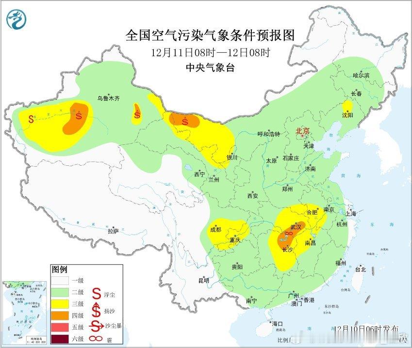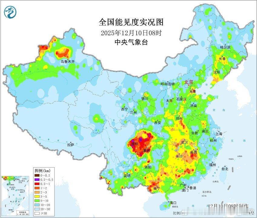 【雾 霾 沙尘】今晨四川盆地出现了成片大雾,局地特强浓雾,8时能见度不足50米,比如:四川隆昌38米、蓬安46米、峨眉47米。另外还有些不足200米的强浓雾,低于100米能见度的有:四川射洪51米、眉山60米、珙县70米、营山71米、宣汉77米、三台87米、西充88米、夹江92米、江西全南64米、新干79米、云南寻甸88米。另外从空气质量看,今晨从湖南湖北陕西河南辽宁部分站点依然存在中度污染,对应有霾。另外甘肃武威和宁夏中卫因为沙尘导致重污染,对应首要污染物为PM10。今天中东部还有霾,不过明天和后天冷空气将东移南下,配合降水,将清除霾。但冷空气也可能导致新疆、甘肃、内蒙古、宁夏部分地区出现沙尘。另外明晨四川盆地可能还有雾。