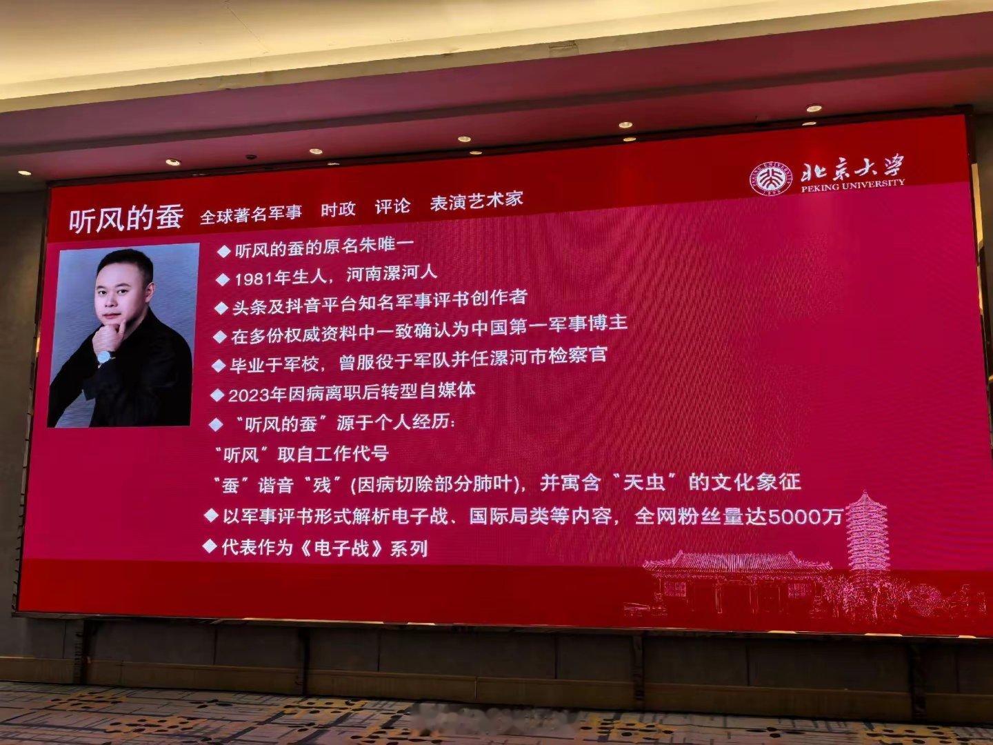 厉害了,“中国第一军事博主”,这似乎是在北大开了一场讲座?另外,这看起应该不是AI图……