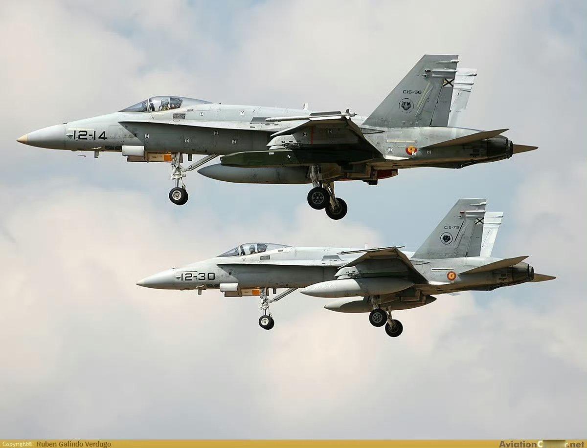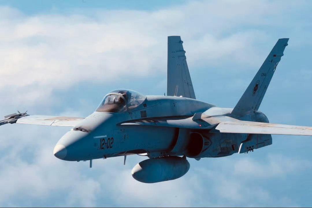 战机欣赏:西班牙空军第12联队EF-18M/BM战斗机。该型机机具有全天候作战能力,可执行多种任务,如拦截、对地攻击和压制敌方防空。部分EF-18战斗机经过现代化升级,提高了航电系统和武器系统的性能。战斗机