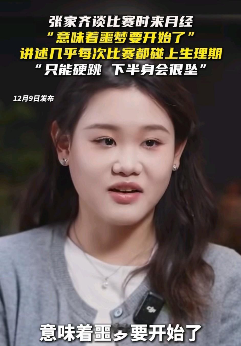 女子跳水运动员遇到月经怎么办? 世界冠军张家齐首次正面回应了这个问题,原来并没有如网上所说的,在比赛前几日选择打针避开。 奥运冠军的跳水赛场,向来是精准与力量的完美呈现,十米高台的翻腾转体,入水时的零水花瞬间,总能让观众感受到竞技体育的极致魅力。 而张家齐的一番回应,却撕开了大众对女运动员的“超人滤镜”,让人们看到这些赛场强者背后,同样要直面普通人的生理烦恼。 张家齐的回应,直接击碎了网上流传的“药物调期”猜测。这位世界冠军在退役访谈中直言,自东京奥运会后,几乎每次比赛都会撞上生理期,对女台运动员而言,月经就意味着“噩梦的开始”。 她并未选择打针等药物干预方式,只能硬着头皮上场,那种下身发坠、整个人沉重如绑了隐形沙袋的感觉,让空中转体都变得格外吃力。 可能有人没概念,跳水这项目看着轻盈,其实对身体的控制要求细到极致。 平时我们觉得多一斤肉不算啥,但对张家齐她们来说,体重稍微有点波动,空中转体的速度就会受影响,入水的水花瞬间就控制不住了。 偏偏生理期容易水肿,整个人会莫名沉下去一截,这可不是小事,相当于给本就难的动作又加了道坎。 可即便这样,张家齐也没选择用药物干预,不是不想,是不敢,毕竟那些能调整生理期的药,多少都含激素,长期用对身体伤害大不说,还可能影响后续的训练节奏,比起短期的成绩,运动员更看重自己能在跳台上坚持多久。 在女子体育圈,这样的“硬扛”并非个例,只是以往鲜少被直白提及,巴黎奥运会上,张雨霏带着发烧后的虚弱,忍着生理期第一天的不适,拖着半边麻木的身子完成了女子200米蝶泳决赛,最终拼下铜牌。 赛后她坦言,上场前队医掐她身体时,右边就像捏在棉花上,游完后还出现了小腹痉挛,躺了15分钟才勉强赶上颁奖仪式,出水后的大哭是情绪的彻底崩溃。 羽毛球运动员黄东萍在苏迪曼杯决赛中,突遇生理期需临时离场处理,即便提前向裁判说明情况,返回赛场时仍因超时被出示红牌罚分。 但她并未被影响,最终带领团队以2比1战胜韩国组合,赛后更霸气回应“你判我的,我必须拿回来”,而这一争议判罚后续也被世界羽联撤销。 女篮国手韩旭的经历则更让人心头一紧,在WCBA总决赛首战中,处于生理期的她因运动量大,白色球裤被经血染红,广东队队长杨力维第一时间提醒她,裁判和其他队员也纷纷围上关心,但韩旭只是轻轻摇头,坚持完成比赛。 赛后她在社交平台发文致歉,解释自己不想影响比赛才未下场,同时也明确拒绝“月经羞耻”,直言月经是女性正常生理现象,运动员带经参赛早已是常态。 以前我们看比赛,眼里只有输赢,只觉得运动员就该拼尽全力,却忘了她们也是普通人,也有绕不开的生理困扰。 更有意思的是,很多人会想当然觉得,顶尖运动员肯定有全套的应对方案,医疗团队跟着,想调个生理期还不简单? 可事实是,大多数女运动员都跟张家齐一样,要么硬扛,要么只能用点热敷、绑腰带这种最基础的办法缓解一下。 不是团队不专业,是真的没什么十全十美的办法,那些能调整周期的药物,副作用太大,没人敢拿职业生涯冒险。 其实张家齐愿意把这事说出来,本身就是一种进步,以前我们总把运动员神化,觉得她们无所不能,能克服一切困难,却忽略了她们作为女性的真实需求。 她们的强大,不是因为不会生病、不会不舒服,而是即便不舒服,也能凭着意志力站在赛场上,这种强大,比单纯的金牌更有力量。 现在慢慢有越来越多的女运动员愿意把这些“难言之隐”说出来,黄东萍直面裁判的罚分,张家齐坦言自己硬跳的经历。 她们不是在卖惨,是在让更多人看到,女性运动员的成长之路,比我们想象的更不容易。 她们要对抗的不只是对手,还有自己的身体规律,还有那些默认以男性为标准的比赛规则。 我们总说体育精神是突破极限、挑战自我,可真正的体育精神,也该包括对运动员真实身体状况的尊重。 张家齐的话,让我们看到了冠军光环下最真实的一面,也让我们明白,那些赛场上的精彩瞬间,从来都不是理所当然。 当张家齐、黄东萍、韩旭们不再对生理期避而不谈,当这些隐秘困境被公之于众,我们更该思考,竞技体育的公平,不仅是对手间的实力对决,更该是对不同性别生理差异的包容与尊重。 那些赛场上的坚持,从来都不该被默认为“理所当然”,而值得被看见、被理解、被善待。