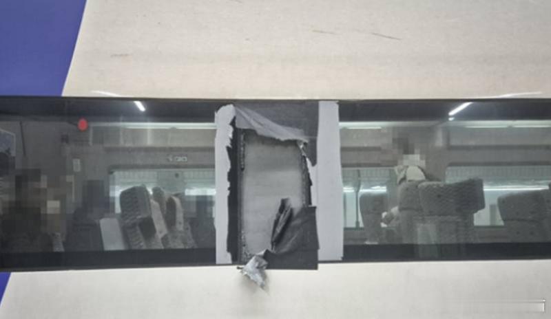 【韩国高铁行驶中车窗破裂 乘务员用胶带临时封补引发安全质疑】海外新鲜事 近日,韩国一名乘客在搭乘高铁时发现车窗破损,而列车工作人员竟仅用胶带和布料进行简易补强,令人担忧安全问题。相关照片曝光后迅速在韩国社交平台引发热议,运营单位韩国铁道公社(Korail)也紧急作出回应。据《韩国中央日报》报道,8日下午,一名搭乘KTX-215次列车的乘客在3号车厢发现外侧车窗中部的“假面板”(dummy panel)疑似在高速行驶途中遭飞石击中而出现裂痕。列车人员随即以胶带和布料进行遮盖作为临时处理。然而,这名乘客拍摄的照片显示,当列车抵达首尔站时,胶带与布料已经大面积脱落,但列车仍继续高速运行,令乘客质疑其是否存在安全隐患。事件曝光后引发广泛讨论。韩国铁道公社随后还原事发经过称,当时列车正从庆尚北道浦项开往首尔,途中轨道上的碎石击中了3号车厢车窗间的假面板,导致外层破裂。由于受损部位背后设有铝制结构层,官方评估认为“不会影响列车运行安全”,因此才以胶带进行临时固定,列车返站后将按程序进行正式维修。图:近日南韩有民众搭高铁发现车窗破损,列车人员竟然只以胶带和布料随意修补。 (图翻摄自X)