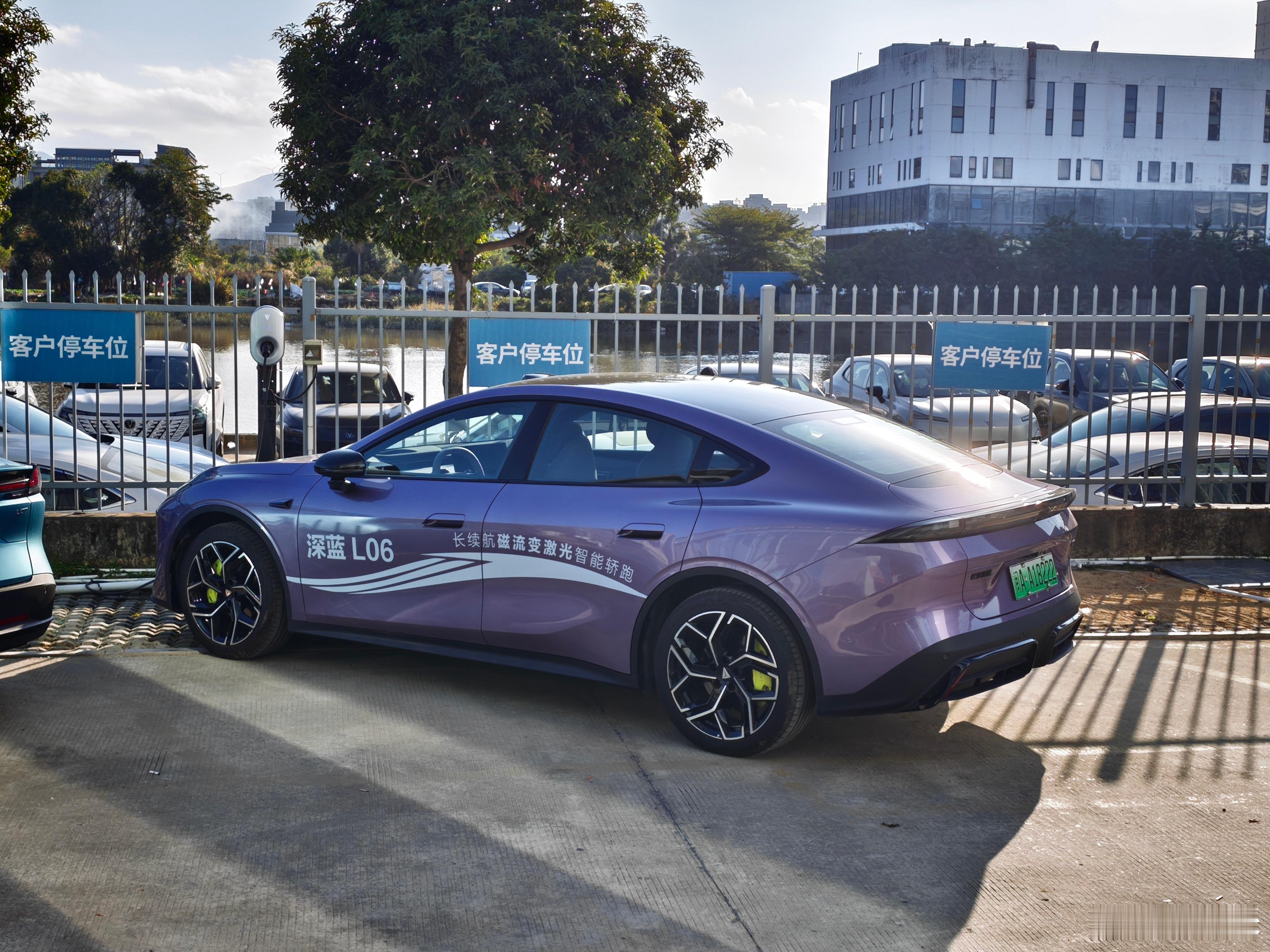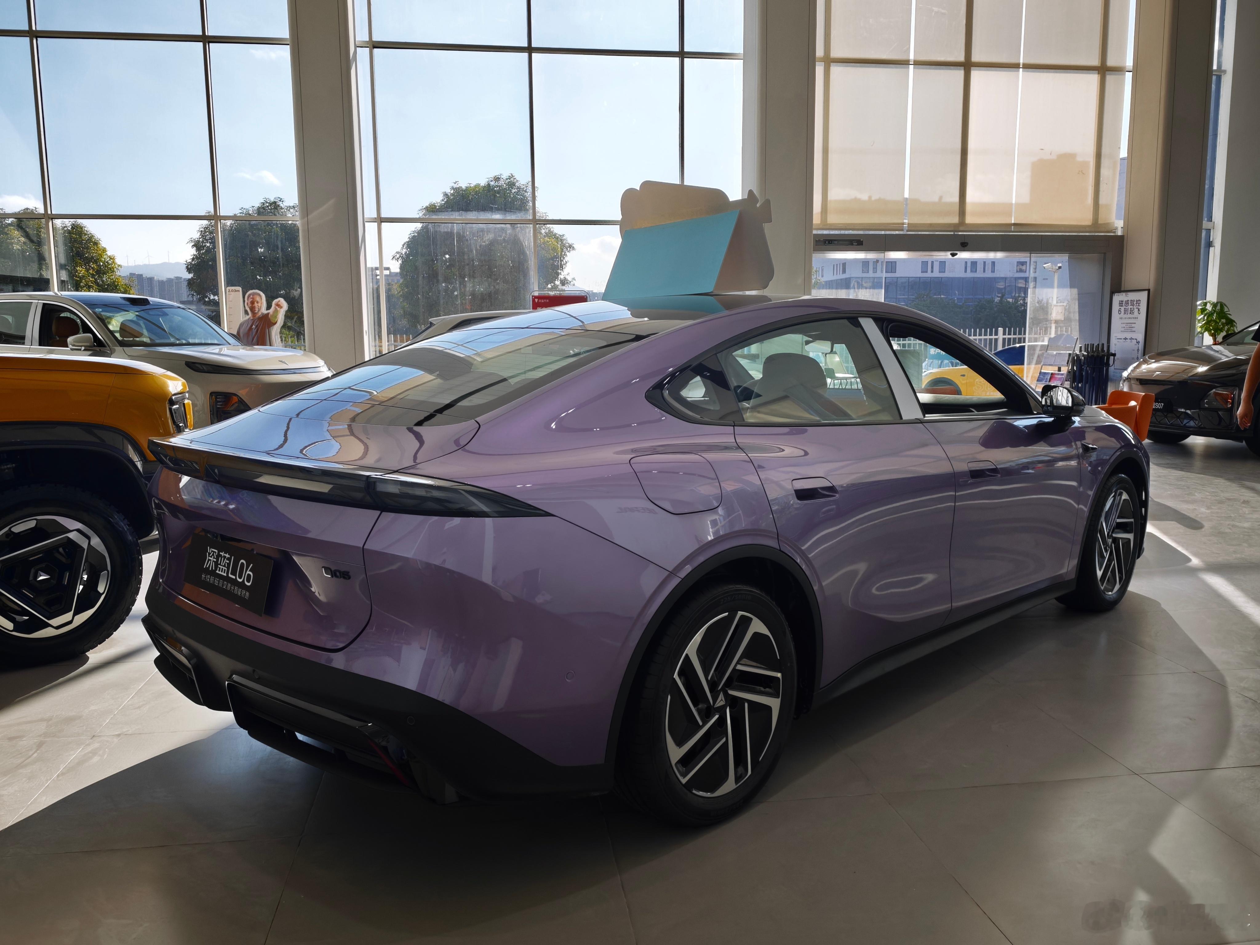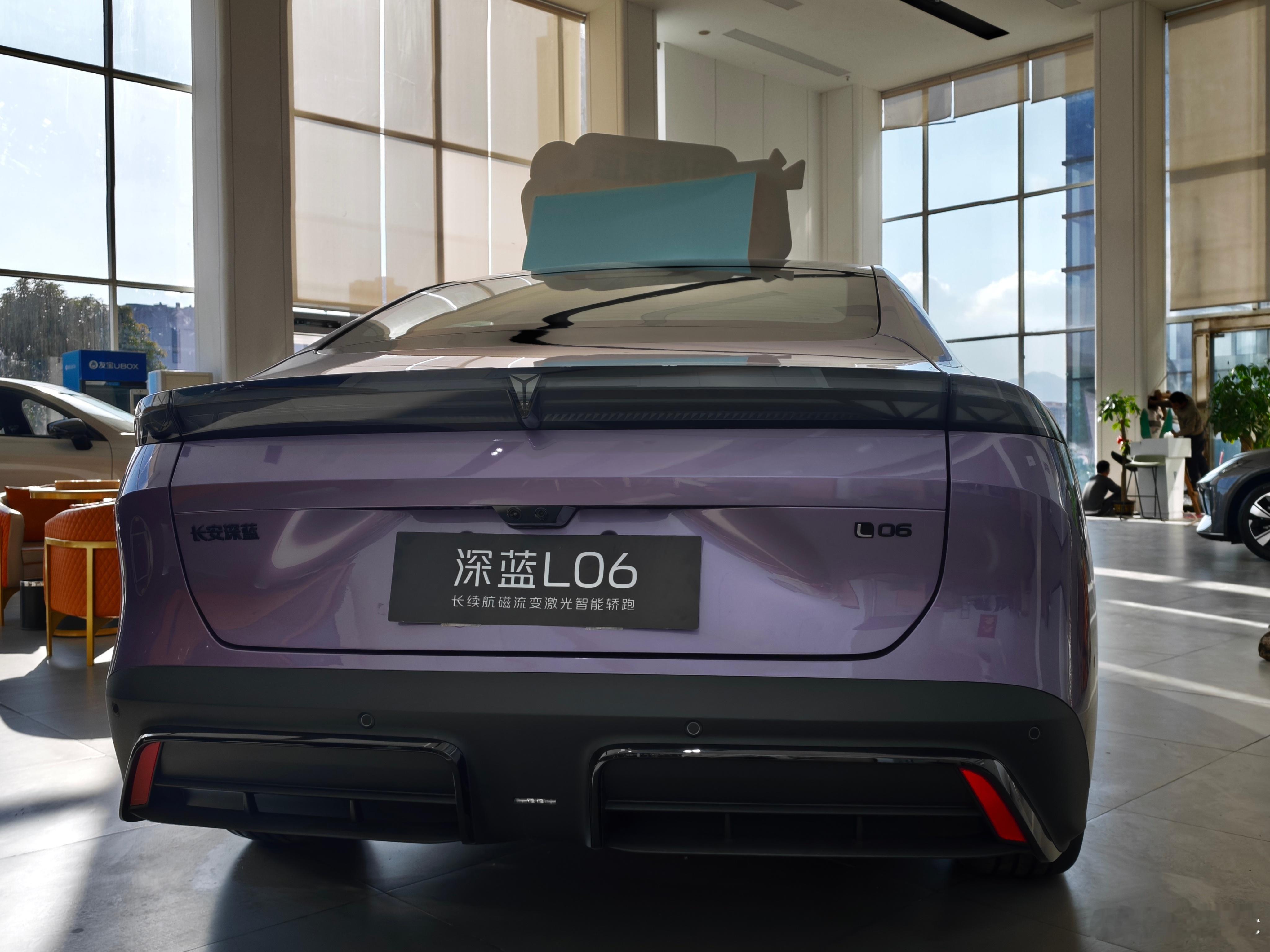 终于完整、仔细地体验了深蓝L06。在经历上次那家店的业余之后,我毅然换了一家门店进行体验,这才得知上次那家经销商已经没有资格代理深蓝汽车了,我看了下小程序,确实无法在线预约试驾了,就那个业余劲儿,也是应该。本次的销售服务良好且专业,体验很完整。静态的大致感受我之前已经写过,这次主要写一些细节。展车和试驾车均为主推的紫外紫内,紫色车漆的漆面质感不错,有明显的闪粉,但细看橘皮纹很多,看在价格的份上可以原谅。仔细看车尾灯组,AB灯是对不齐的,我看了两台车都是这样的情况,不知道这个落差是否有意而为之,是设计的小巧思。高配轮胎是高级的马牌,低配是赛轮。内饰质感很到位,皮料很舒服,紫色亚克力饰板还闪耀着闪粉的光芒,不管是质感还是新意都做足了。车机反应非常快速,但UI和字体的设计确实需要提升了,看起来实在不高级。一些地方还是看得出成本的控制。比如廉价的、不能分开控制的前排顶灯、比亚迪秦Plus同款的单区域自动空调,以及试驾车上莫名断裂的后排出风口,给人的细节印象不是很好,虽然我完全理解这台车的成本都去了哪里。乘坐感受其实也不差。座椅软硬适中,承托力好,配合不错的皮质,前后排座椅都能比较舒适地贴合我的身体。后排坐姿在电动轿车里算很得体的,虽然靠背略微有些直,但也算不上难受,只能说没那么舒展。而且,比较直的靠背带来了4指的头部空间,这可比启源A06调到舒适角度要更宽敞——当然,绝对有天幕的缘故,L06是没有车顶遮阳帘的。副驾有全车唯一的零重力座椅和座椅按摩,在这个零重力座椅泛滥的时代,L06的这张椅子只能说无功无过,基本合格。前后备箱空间都很合适。前备箱是宽度较宽、深度中等的类型,后备箱开口不大但进深很可观,后排靠背也能按比例放倒。打开前备箱时,我注意到L06在前备箱上方的塑料盖板上并没有任何的标记,这很好,我实在不喜欢A06在细节上对某些车的狠狠对标——哪怕L06的后排车顶拉手也是相似的皮质拉带,但起码造型是自己设计的。L06让我唯一觉得有点心有灵犀的地方,只有侧窗线条和门把手了(如图4),不过这个机械半隐藏门把手我必须给一个巨大的好评,特别好用。侧后方看去,车身线条也非常好看舒展。静态的感受不错,我自然就很期待试驾的体验了。趁销售去准备车辆的时间,我在展厅感受了一下这台车的导航、空调、座椅通风和环境隔音。导航比较神奇,我导航去鼓浪屿,它居然想让我直接上岛,给我搜索了两个岛上的停车场,要知道鼓浪屿是不让开车上去的。座椅通风降温迅速,我穿了3件衣服,还是明显能感觉到后背的凉意;空调降温也非常快,24.5℃就很凉,比我的长安马自达好多了;环境隔音是什么程度呢,店里开着比较大声的音响,我窗户一关,要非常仔细去听才能听得到音乐声。正琢磨着,试驾车开到了门口。首先我爬上了后排,我就发现这动态隔音和静态完全不一样——风噪路噪都在均匀地增加,时速上到65-70以后,噪音就有点明显了,80-90的情况下体感噪音的增加并不多,但总体上看确实有点吵。相比起来前排的隔音反而做得不错,时速100以内都比较得体。最重要的进化,在于这套磁流变底盘,或许也可以用那个大家都知道的名字来称呼它——MRC。一出门我就感觉到这套底盘确实今时不同往日,整趟试驾的体验更是验证了这一点——在14-15万的价格下,这就是几乎完美的底盘,没有额外的碎震,没有拉不住的弹跳,减速带厚重有韧性,过弯变道也让人内心踏实,加速刹车也不抬头点头,飞坡更是不必说,长安的短版终于消失了!每一次过滤都干脆利索,但又不是纯硬的类型,在舒适悬架下,路面的情况会在经过包裹后传入车内,哪怕是运动悬架模式,在硬度拉满的情况下都不会让乘客感受到不适,过颠簸路面的体验也很从容。这套底盘,贵在真实又不难受的体验,平衡了运动与舒适,长安的底盘也是站起来了。说了最好的部分,接下来要说有些失望的部分了,就是加速踏板的响应。在标准和运动模式下,加速踏板的响应我都不太满意,具体表现在初段非常冲,轻点踏板没啥反应,再多踩一点点“嗷”的就冲出去了,实在有点窜。这种调校在运动模式或者需要快节奏驾驶的情况下非常好,与非常跟脚的中后段动力输出一起,可以带来手起刀落的体验,但当你想佛系驾驶或者只是拥堵跟车的情况下,就会有点难受了,需要非常精确地控制右脚,或者干脆开到没啥劲的经济模式——我认为运动模式这么调无可厚非,但标准模式还是应该舒缓一些吧?刹车的脚感无功无过,略微有点不够紧致,但起码是线性的,作为一台本质上还是代步车定位的车,也就不苛责这方面了。转向手感和A06比较像,但配合上车身跟随性和优秀的底盘,操控起来总体比A06会更运动:中心区小角度同样带有轻微的扯皮筋感,但在正常角度输入的情况下,转向力的体验都要更紧,车尾动态也更跟,加上这个造型更运动、握感更实的方向盘,我确实还挺爱开这个小家伙的——加速调得更完善一点就好了。体验结束后,我询问了销售一些市场端的问题。L06的客户群体基本做到了男女五五开,大部分人都会选择这套紫外紫内的配色,并且会选择高配车型,至于长短续航倒是都会有人买,都是宁德时代的电池,看个人需求。目前订车大约只需要2周就可以到车,最近订购还能享受免息和购置税补贴,还是比较划算的,但我